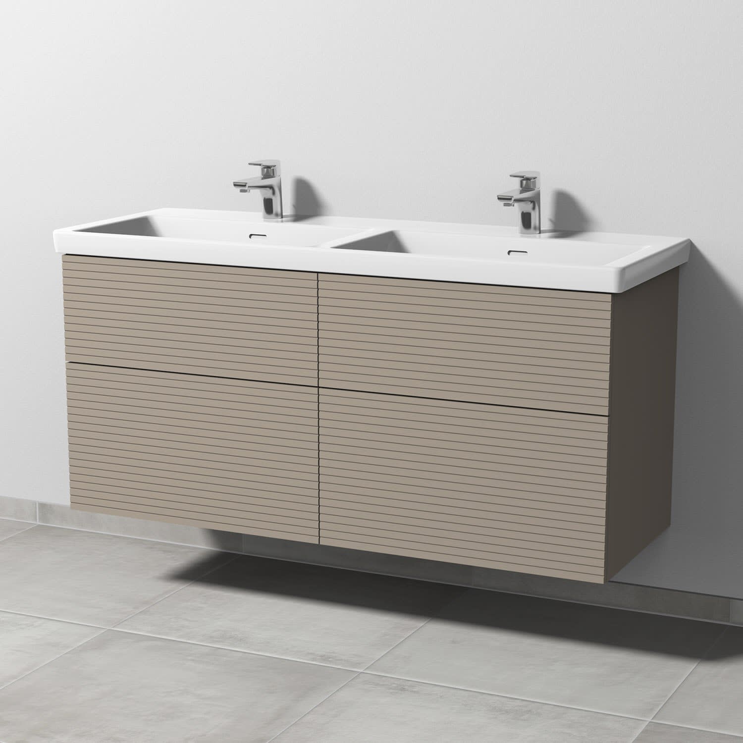 Sanipa 3way-Struktur Unterschrank 130 cm, 4 Auszüge mit Villeroy & Boch Subway 3.0 Doppel-Waschtisch