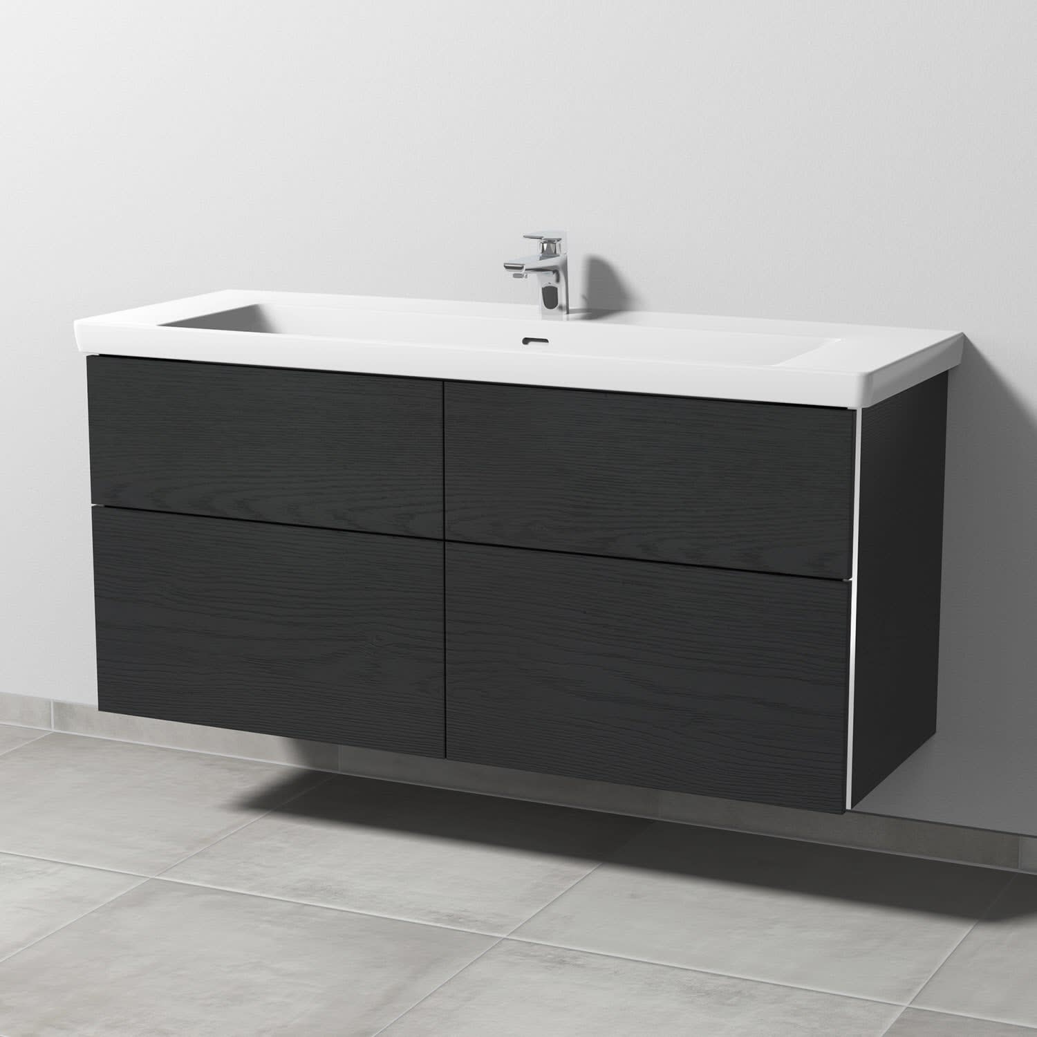 Sanipa 3way Unterschrank 130 cm, 4 Auszüge mit Villeroy & Boch Subway 3.0 Waschtisch