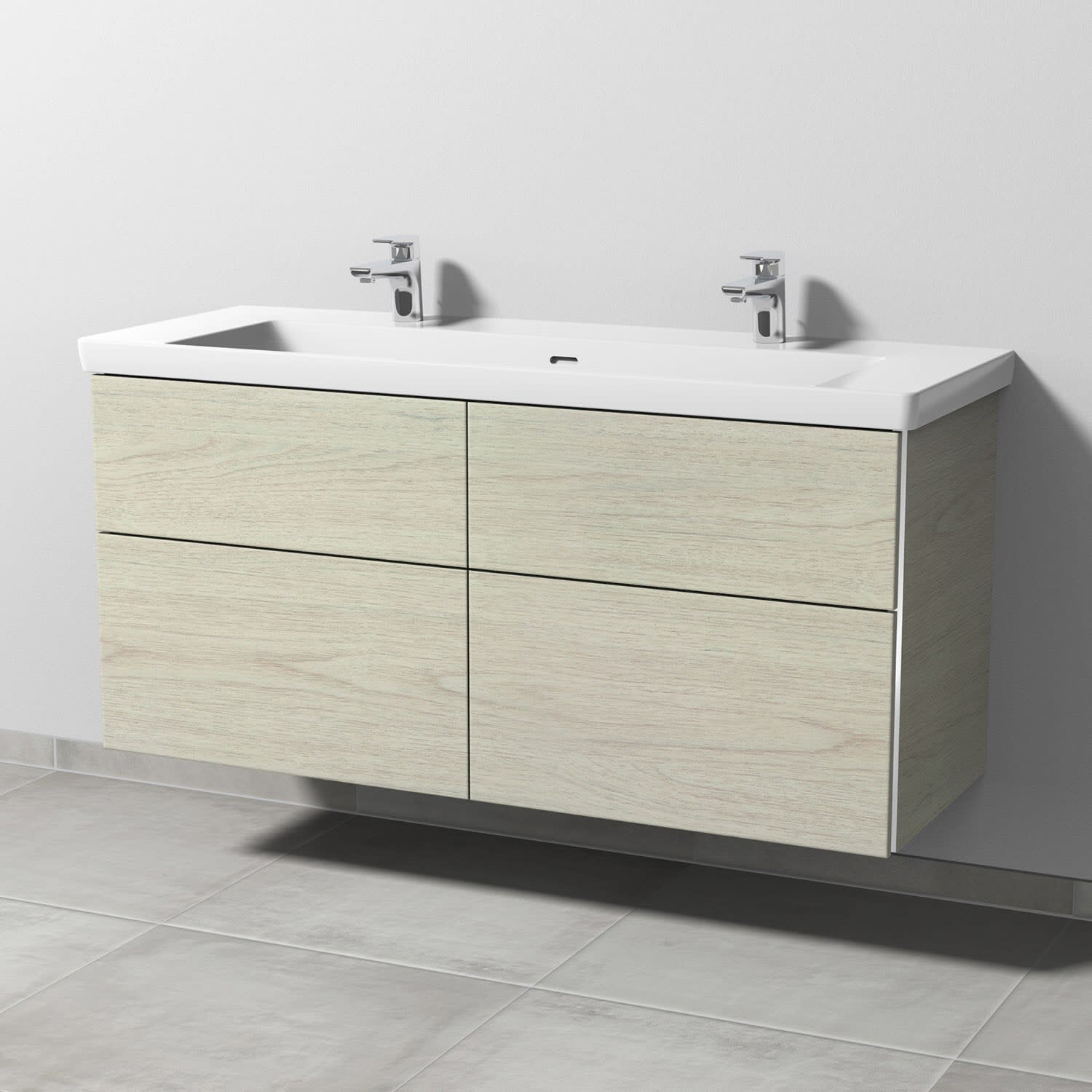 Sanipa 3way Unterschrank 130 cm, 4 Auszüge mit Villeroy & Boch Subway 3.0 Doppelwaschtisch