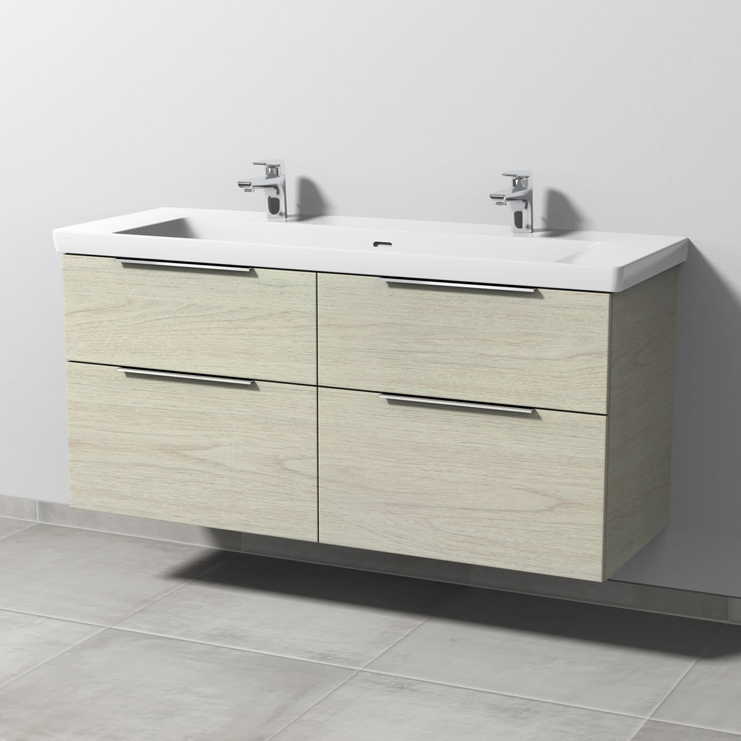 Sanipa 3way Unterschrank 130 cm, 4 Auszüge mit Villeroy & Boch Subway 3.0 Doppelwaschtisch