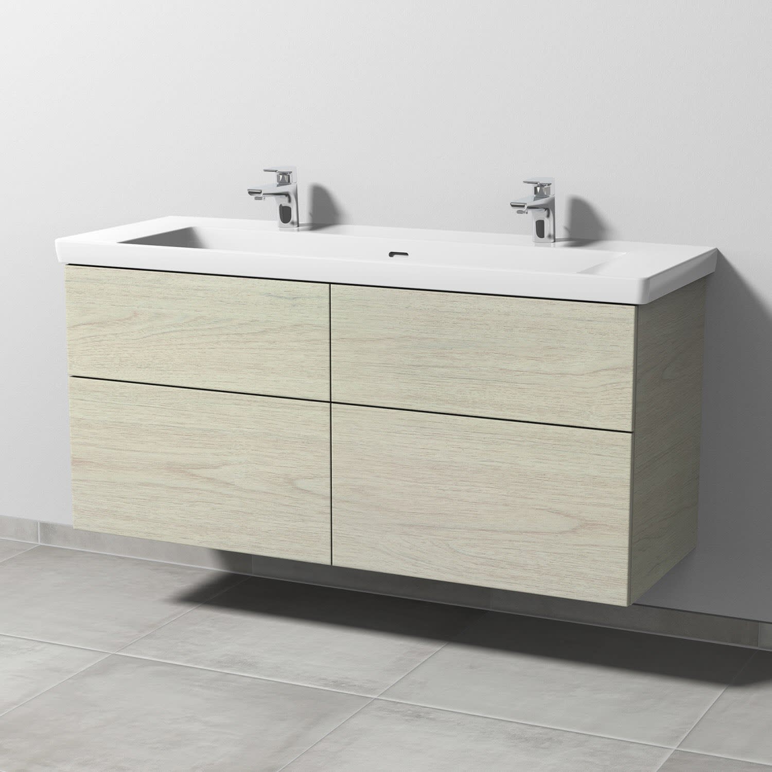 Sanipa 3way Unterschrank 130 cm, 4 Auszüge mit Villeroy & Boch Subway 3.0 Doppelwaschtisch