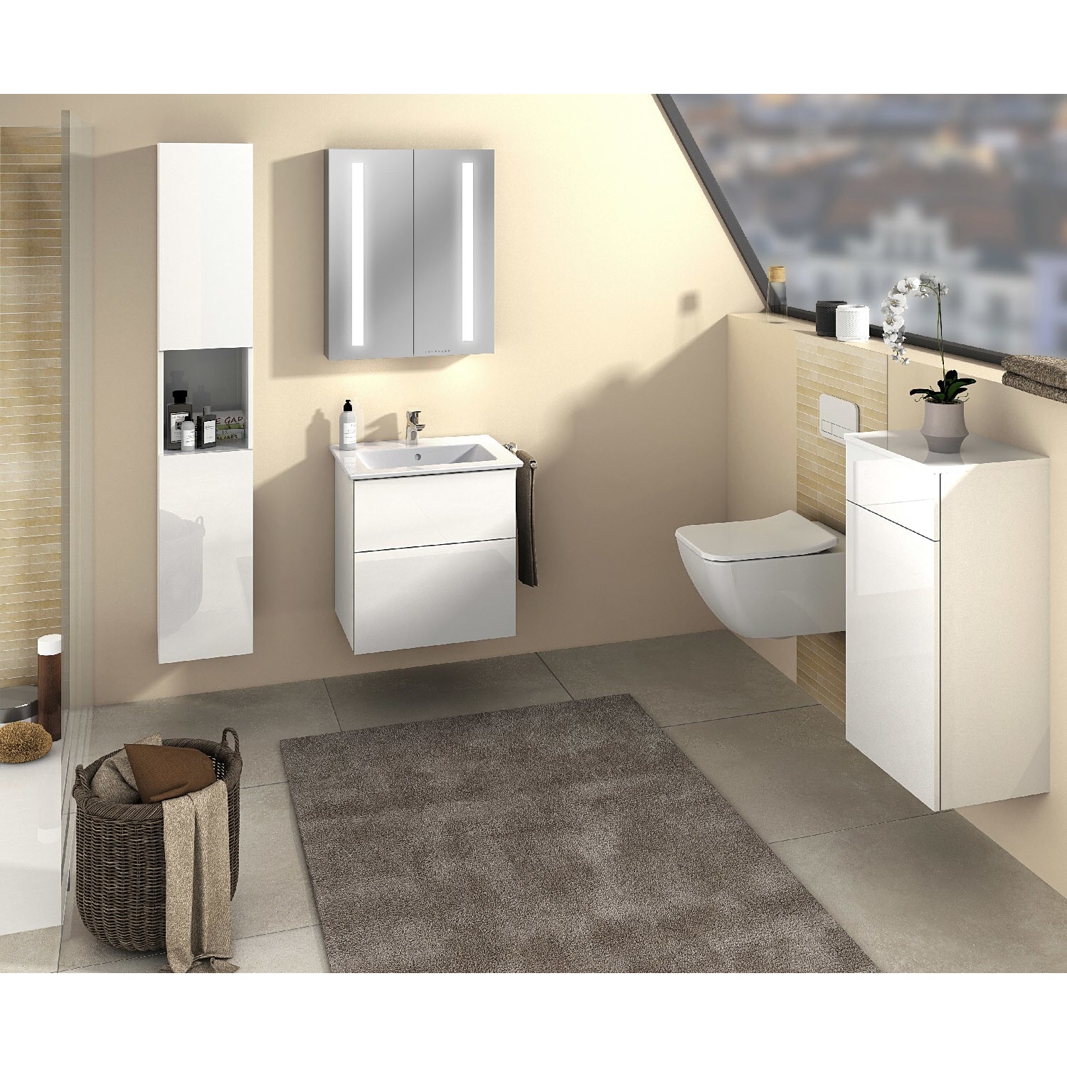 Das Set besteht aus Keramik-Waschtisch Venticello und Waschtischunterbau. Farb- und Strukturabweichungen können in den Abbildungen möglich sein.