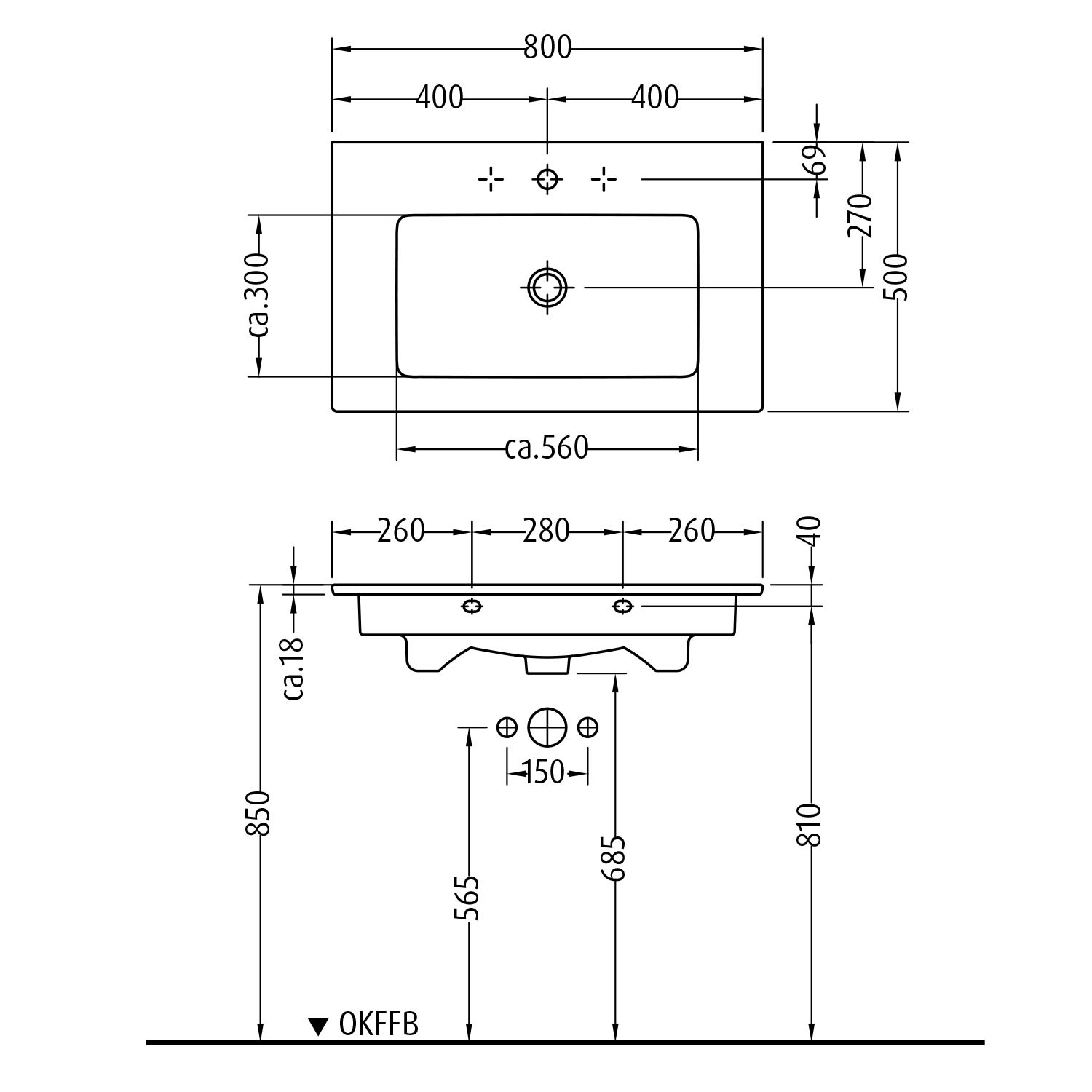 - für 1 x 3-Loch Armatur geeignet