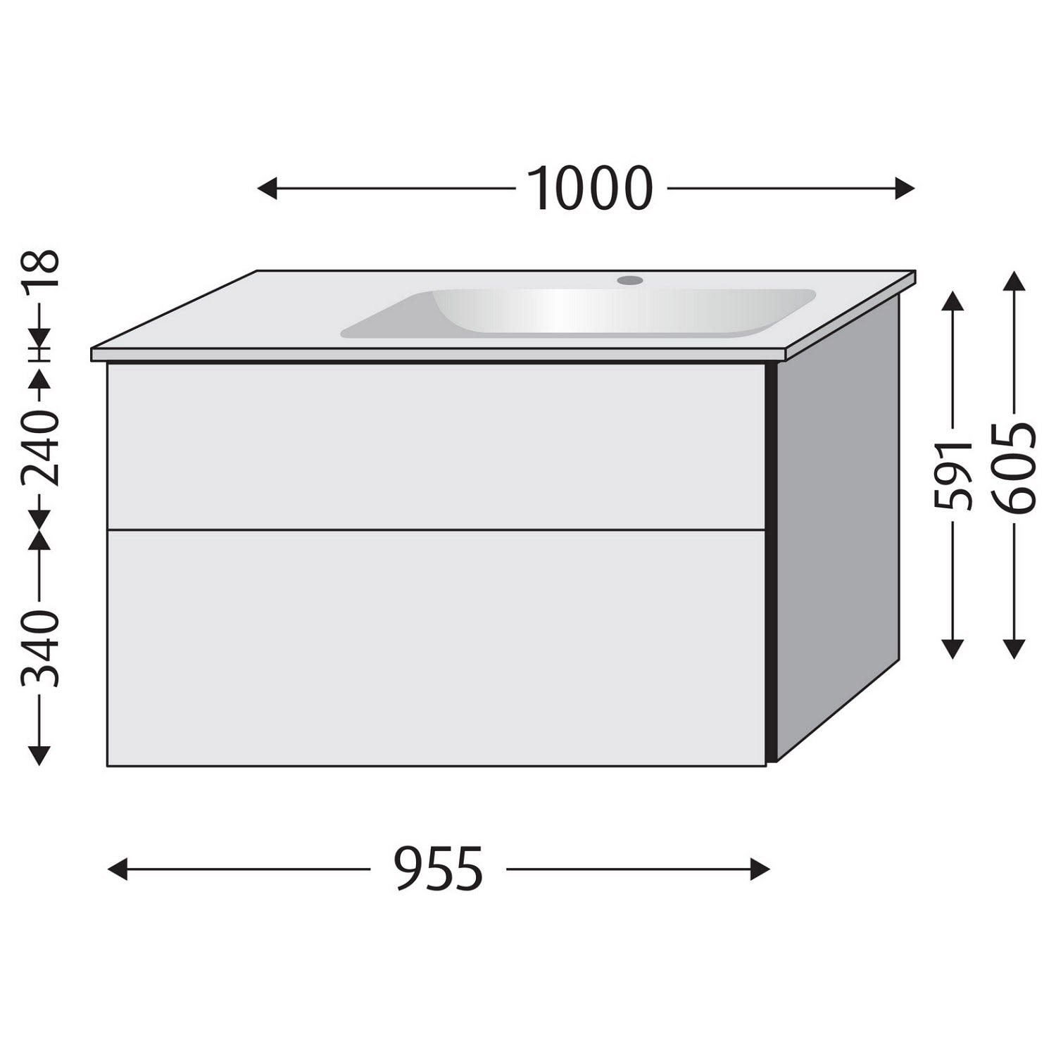 - wandhängend, 2 Metall-Vollauszüge