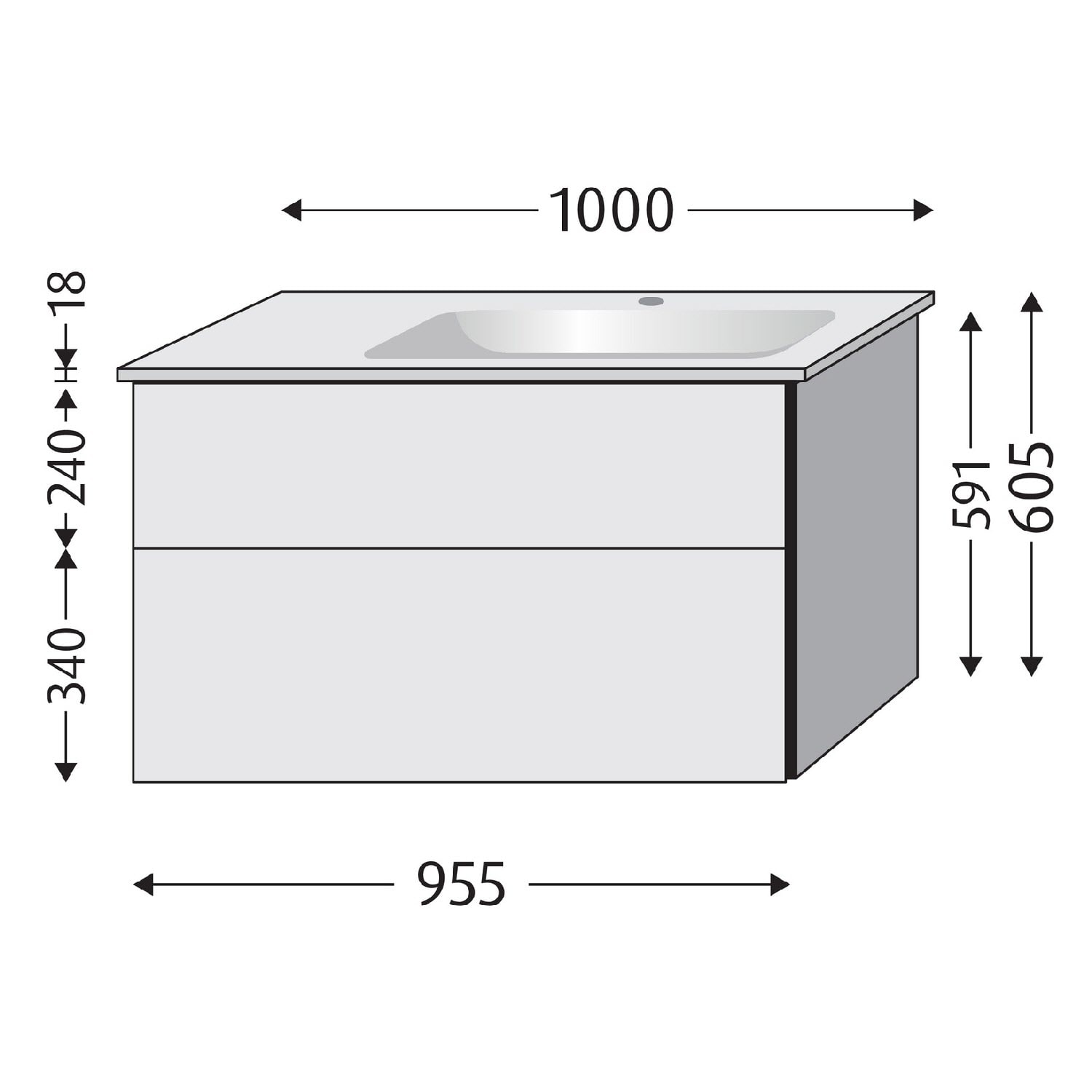 - wandhängend, 2 Metall-Vollauszüge