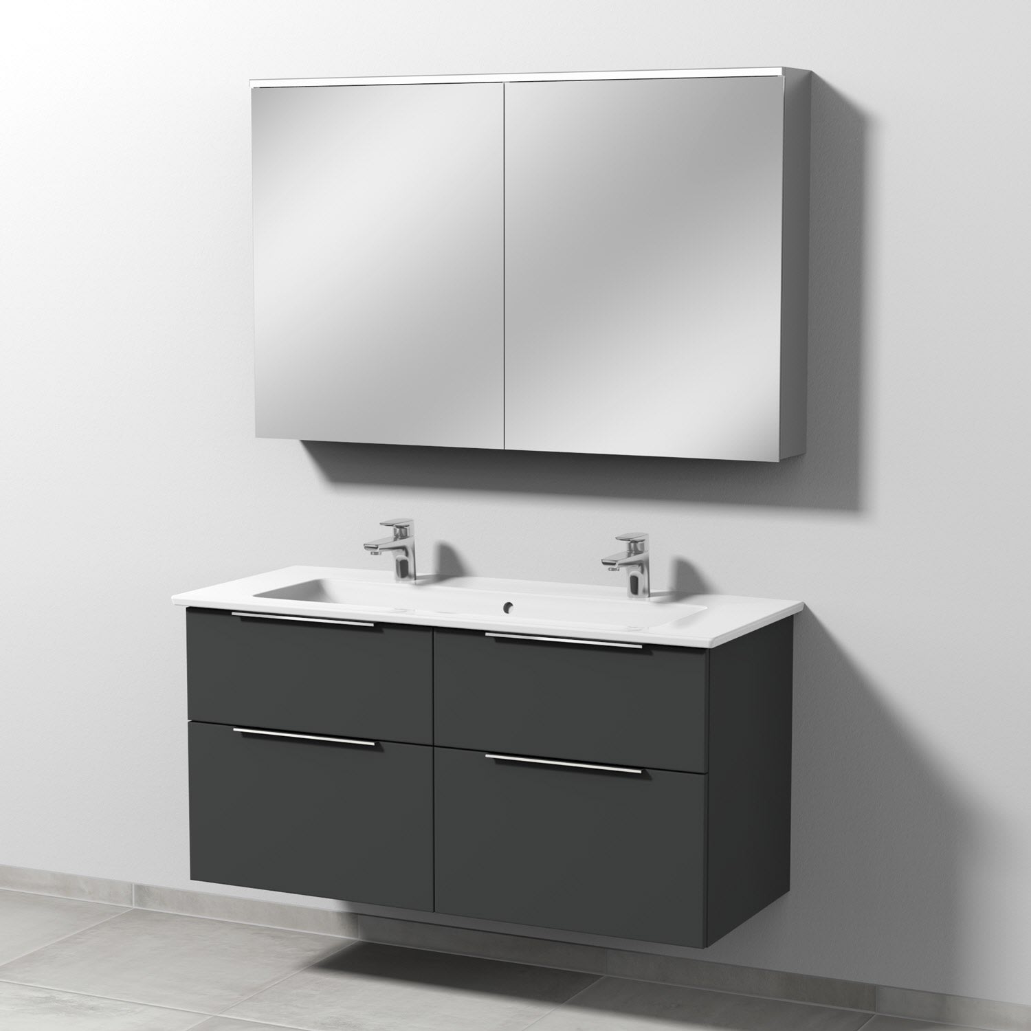 Set besteht aus Keramik-Doppelwaschtisch Venticello und Waschtischunterbau