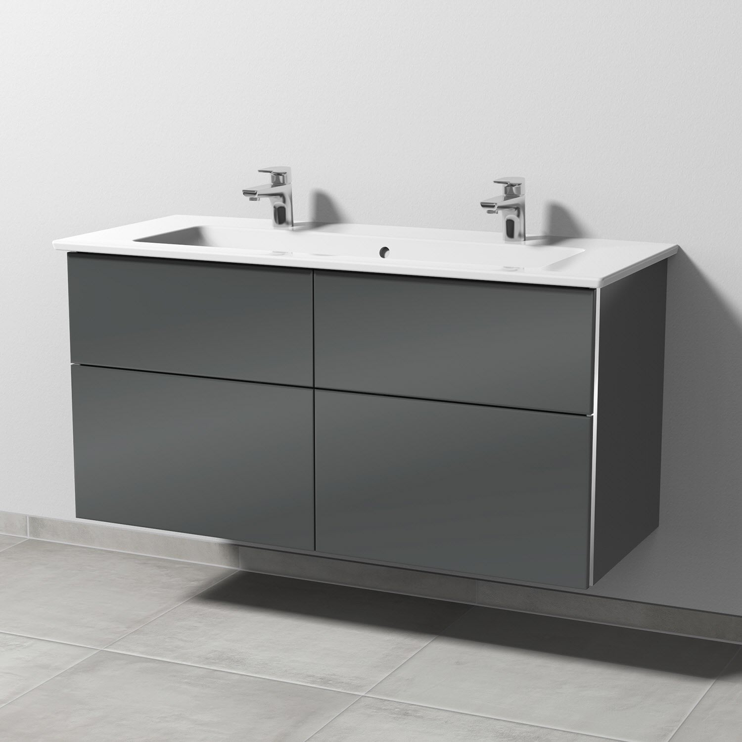 4 Auszüge mit Griffleiste, Doppelwaschtisch