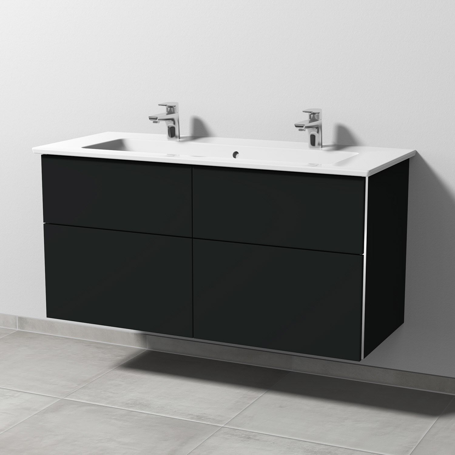 Set besteht aus Keramik-Doppelwaschtisch Venticello und Waschtischunterbau