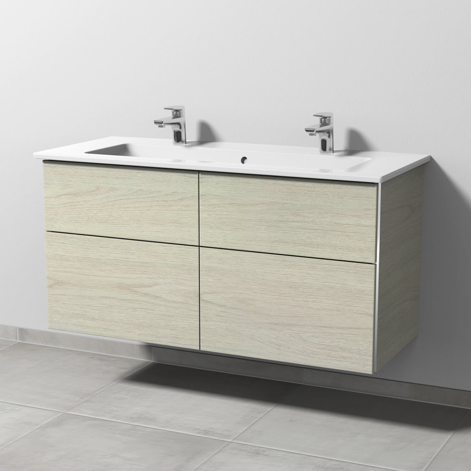 4 Auszüge mit Griffleiste, Doppelwaschtisch