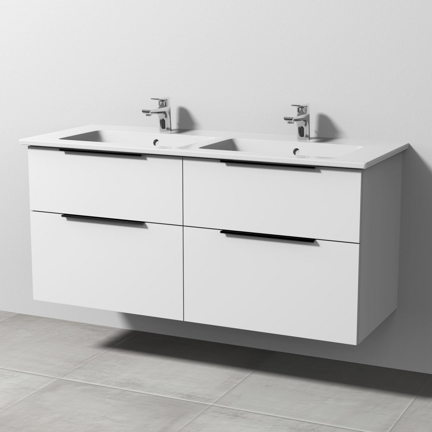 Sanipa 3way Kombination mit Keramik-Doppelwaschtisch Venticello 130 cm, 4 Auszüge mit Aufsatz-Griff in schwarz