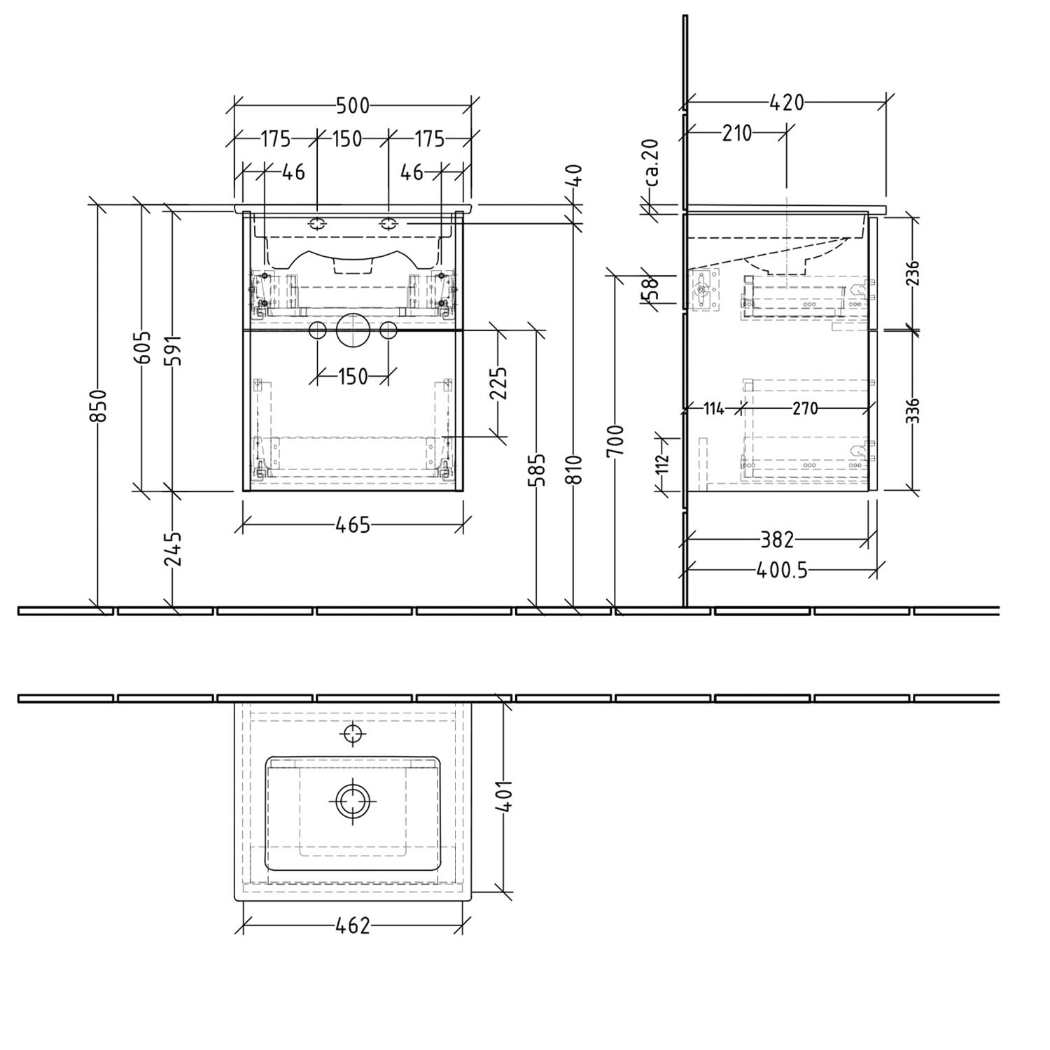 Sanipa 3way-Struktur Unterschrank 50 cm, mit Villeroy & Boch Venticello Waschtisch