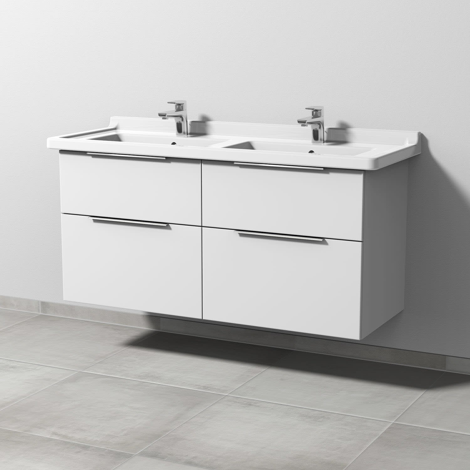 Sanipa 3way Waschtischunterbau für Keramik-Doppelwaschtisch Starck 3 130 cm, 4 Auszüge mit Aufsatzgriff