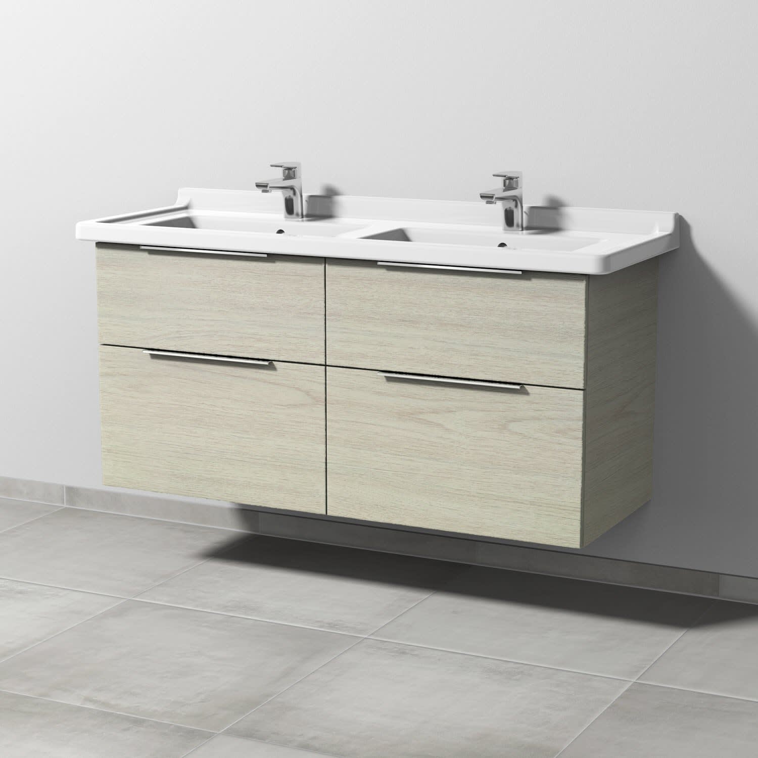 Sanipa 3way Waschtischunterbau für Keramik-Doppelwaschtisch Starck 3 130 cm, 4 Auszüge mit Aufsatzgriff