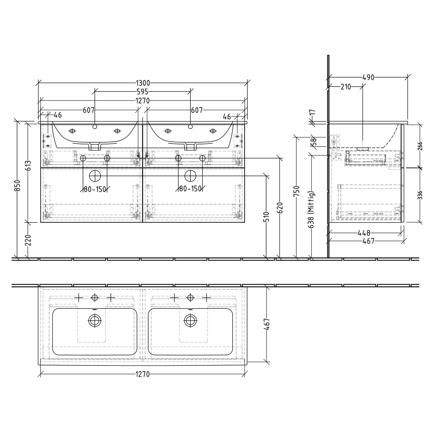 - obere Auszüge mit eckigem Siphonausschnitt