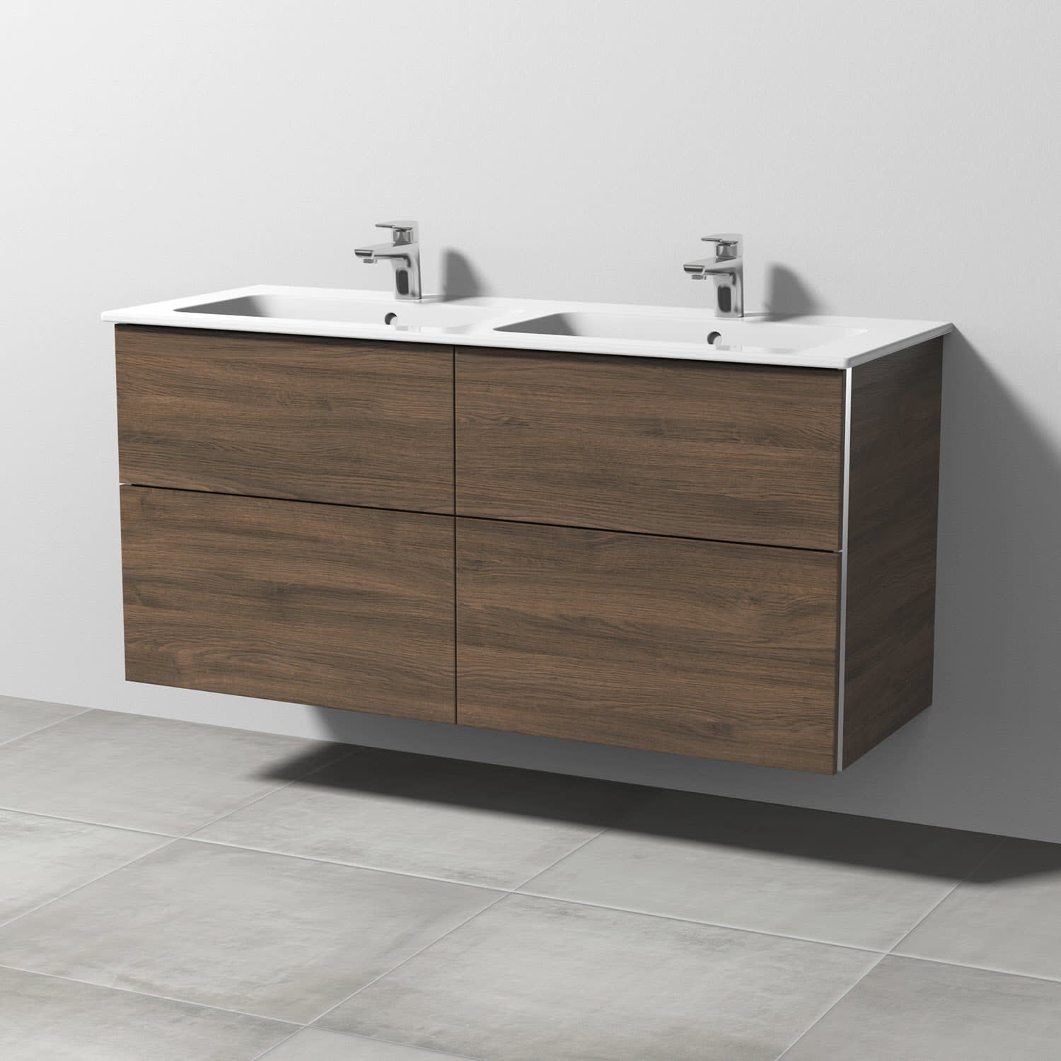 Sanipa 3way Waschtischunterbau für Keramik-Doppelwaschtisch ME by Starck 130 cm, 4 Auszüge mit Aufsatzgriff