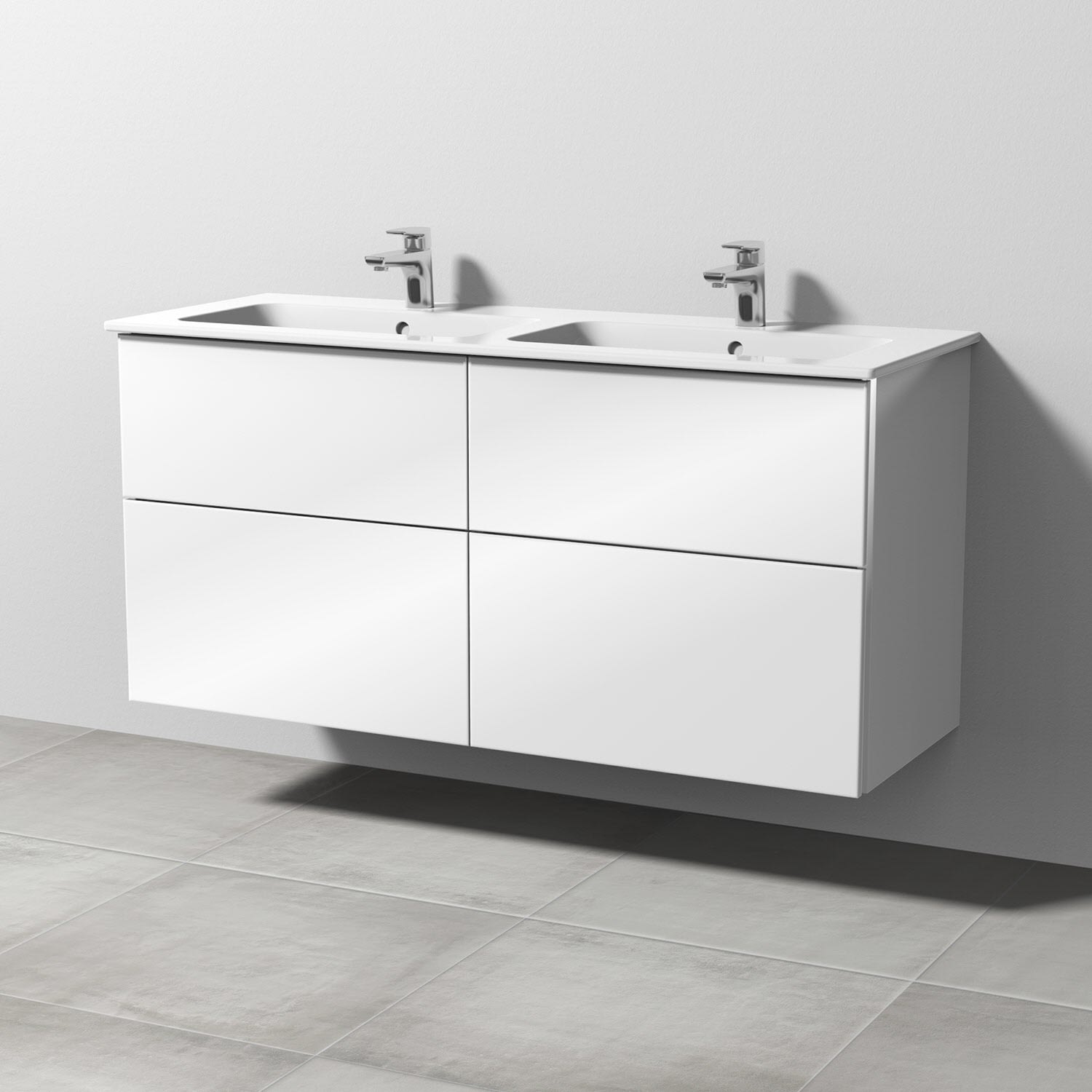 Sanipa 3way Waschtischunterbau für Keramik-Doppelwaschtisch ME by Starck 130 cm, 4 Auszüge mit Aufsatzgriff