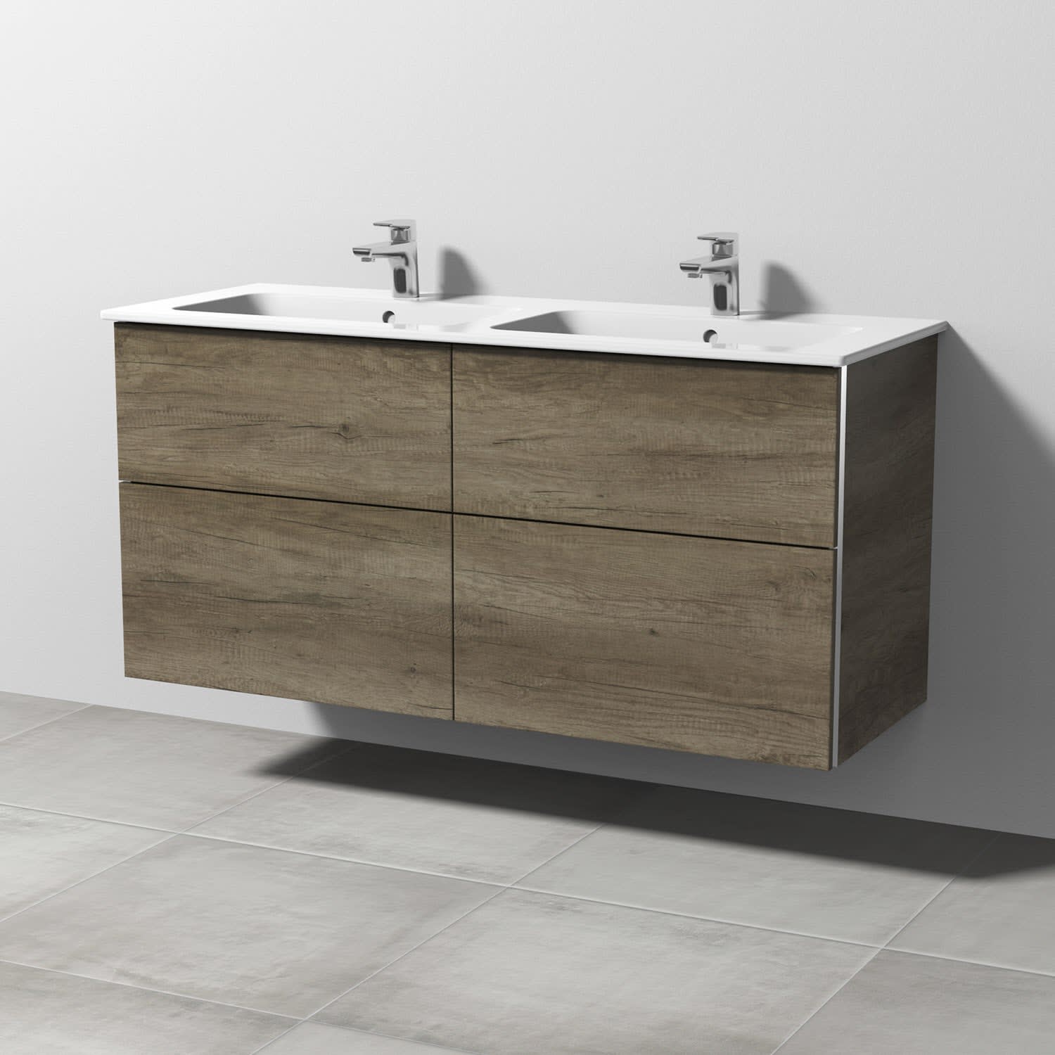 Sanipa 3way Waschtischunterbau für Keramik-Doppelwaschtisch ME by Starck 130 cm, 4 Auszüge mit Aufsatzgriff