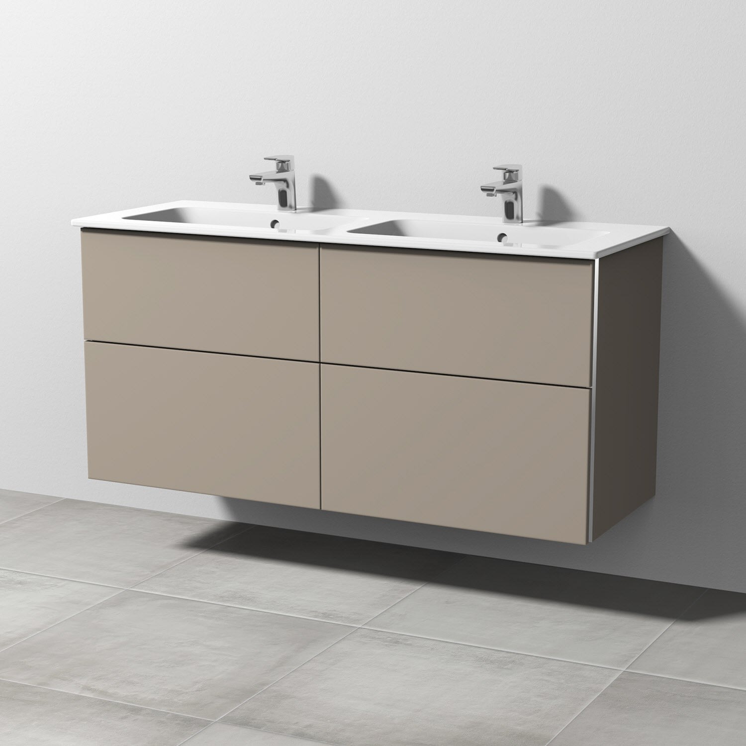 Sanipa 3way Waschtischunterbau für Keramik-Doppelwaschtisch ME by Starck 130 cm, 4 Auszüge mit Griffleisten