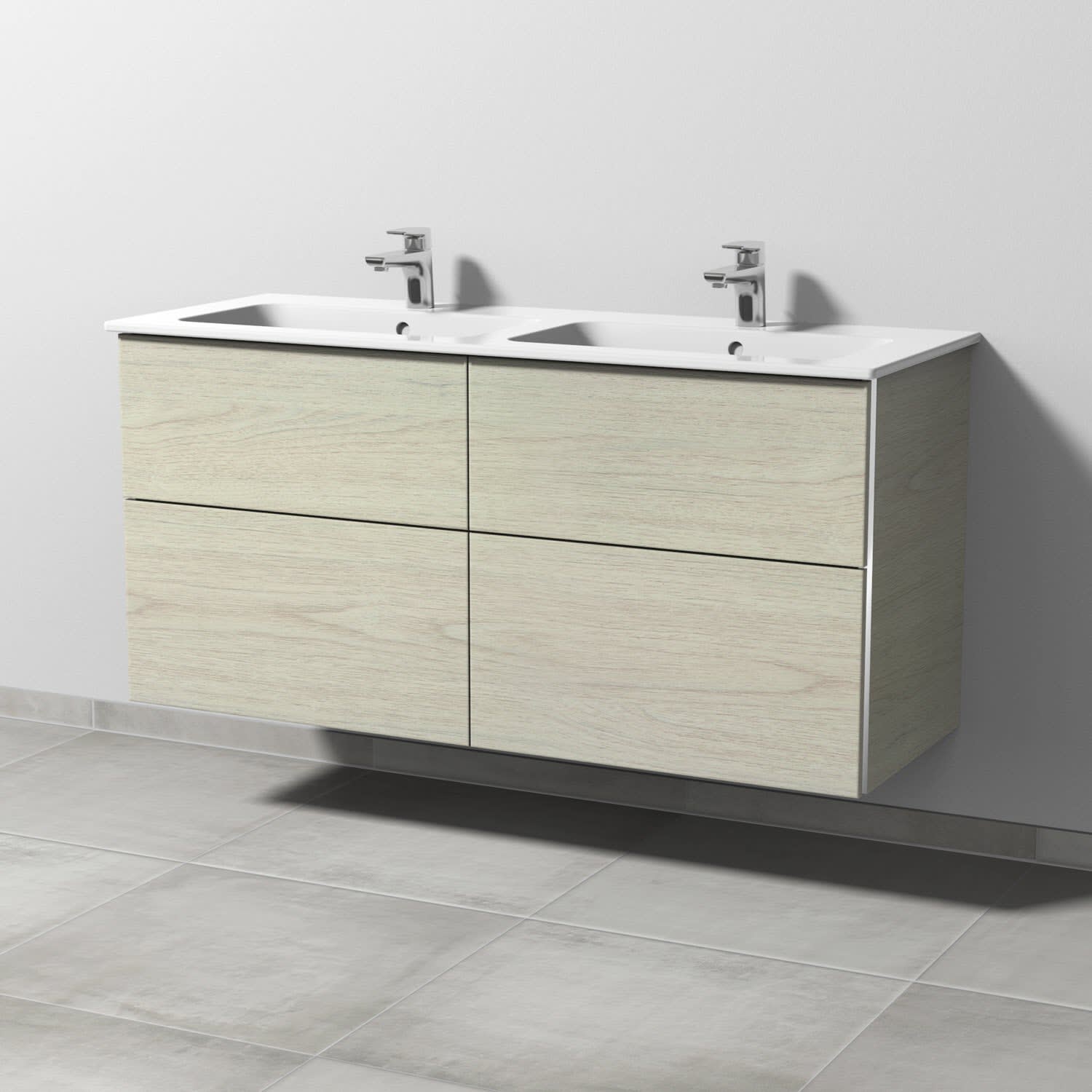 Sanipa 3way Waschtischunterbau für Keramik-Doppelwaschtisch ME by Starck 130 cm, 4 Auszüge mit Griffleisten