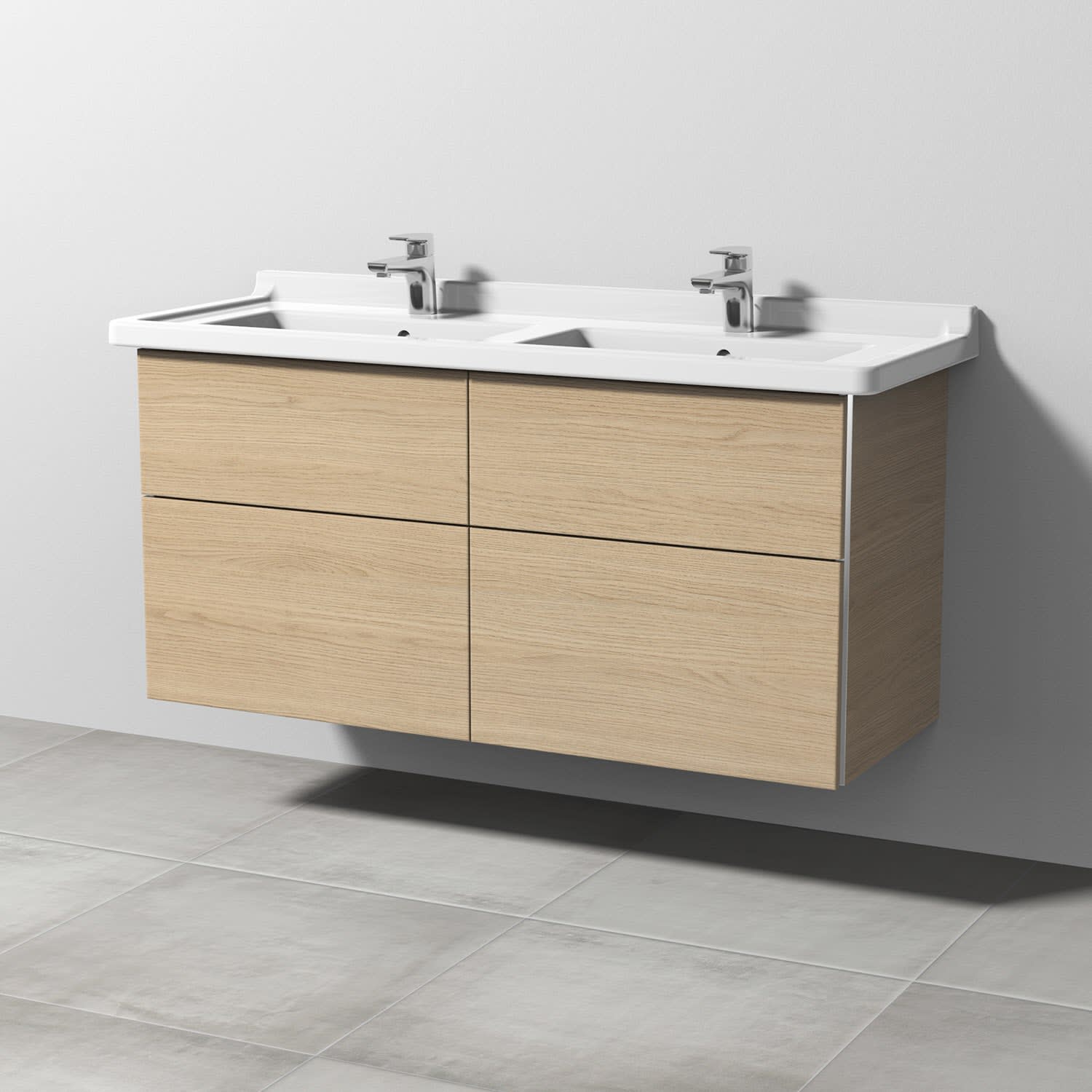 Sanipa 3way Waschtischunterbau für Keramik-Doppelwaschtisch Starck 3 130 cm, 4 Auszüge mit Griffleisten