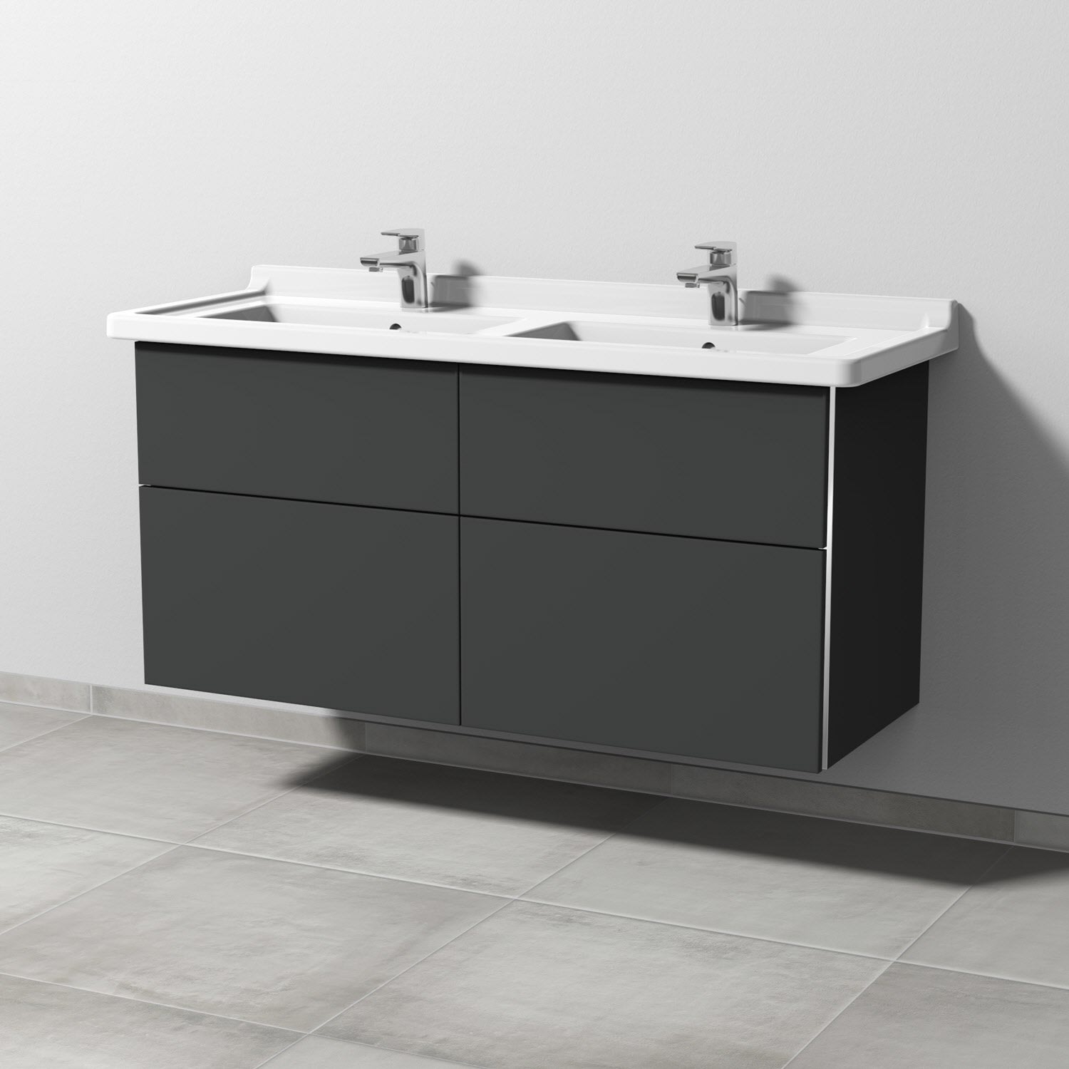 Sanipa 3way Waschtischunterbau für Keramik-Doppelwaschtisch Starck 3 130 cm, 4 Auszüge mit Griffleisten