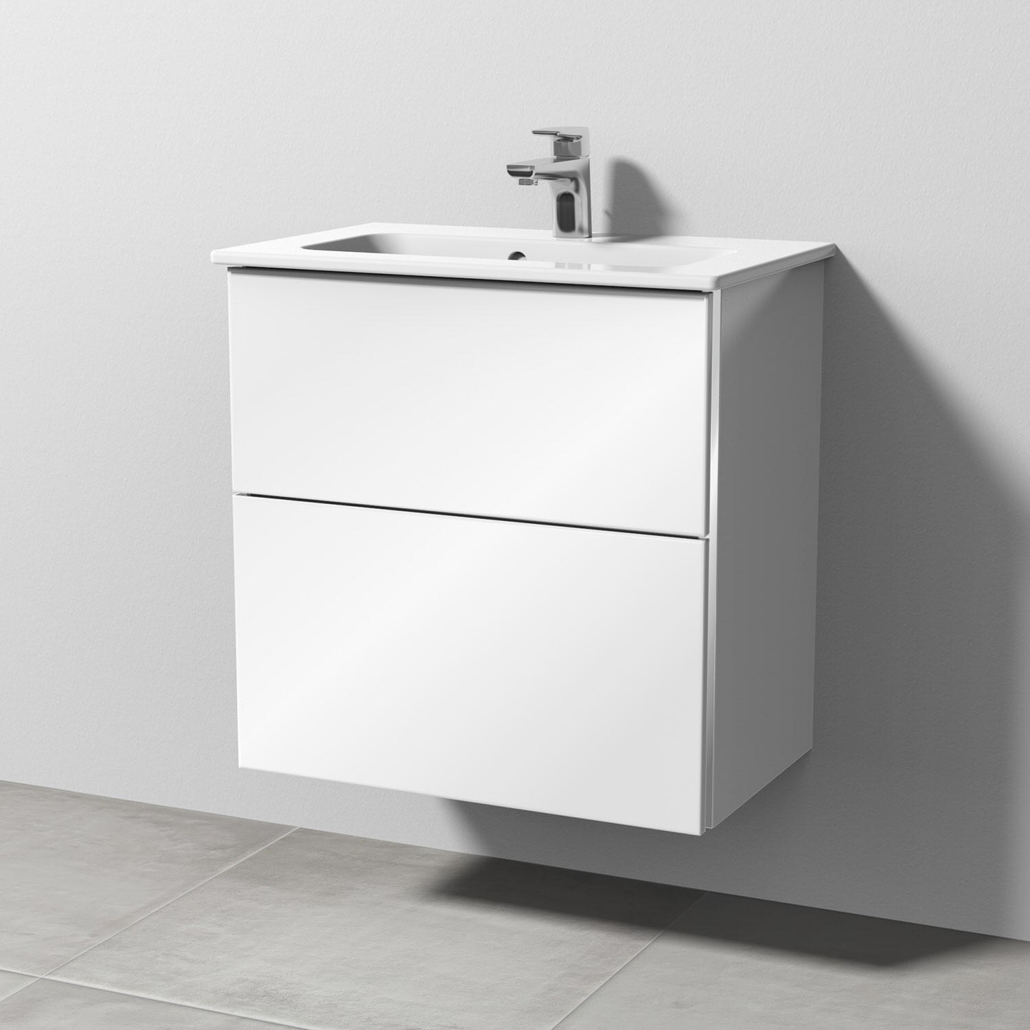 Sanipa 3way Waschtischunterbau für Keramik-Waschtisch ME by Starck 63 cm, 2 Auszüge mit Griffleisten, geringere Tiefe