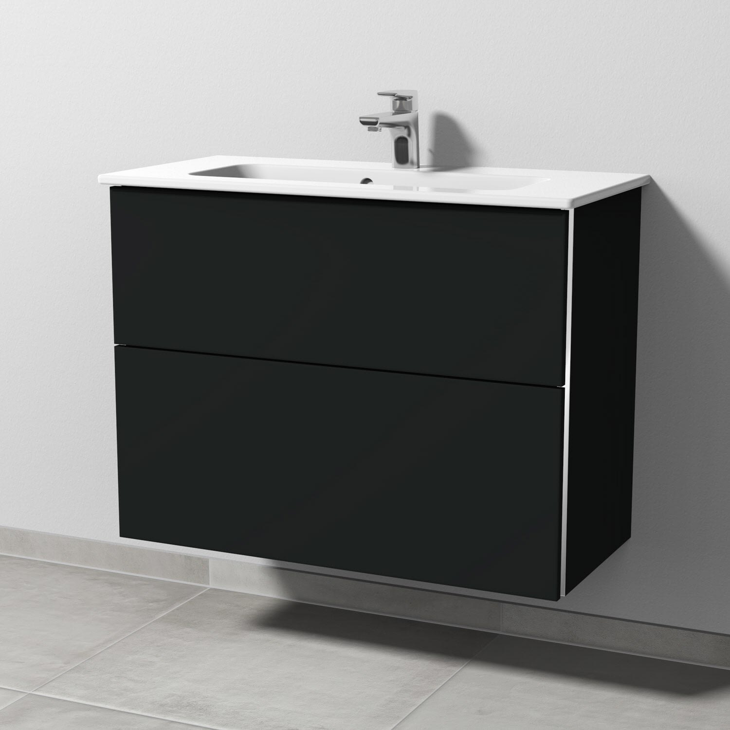 Sanipa 3way Waschtischunterbau für Keramik-Waschtisch ME by Starck 83 cm, 2 Auszüge mit Griffleisten, geringere Tiefe