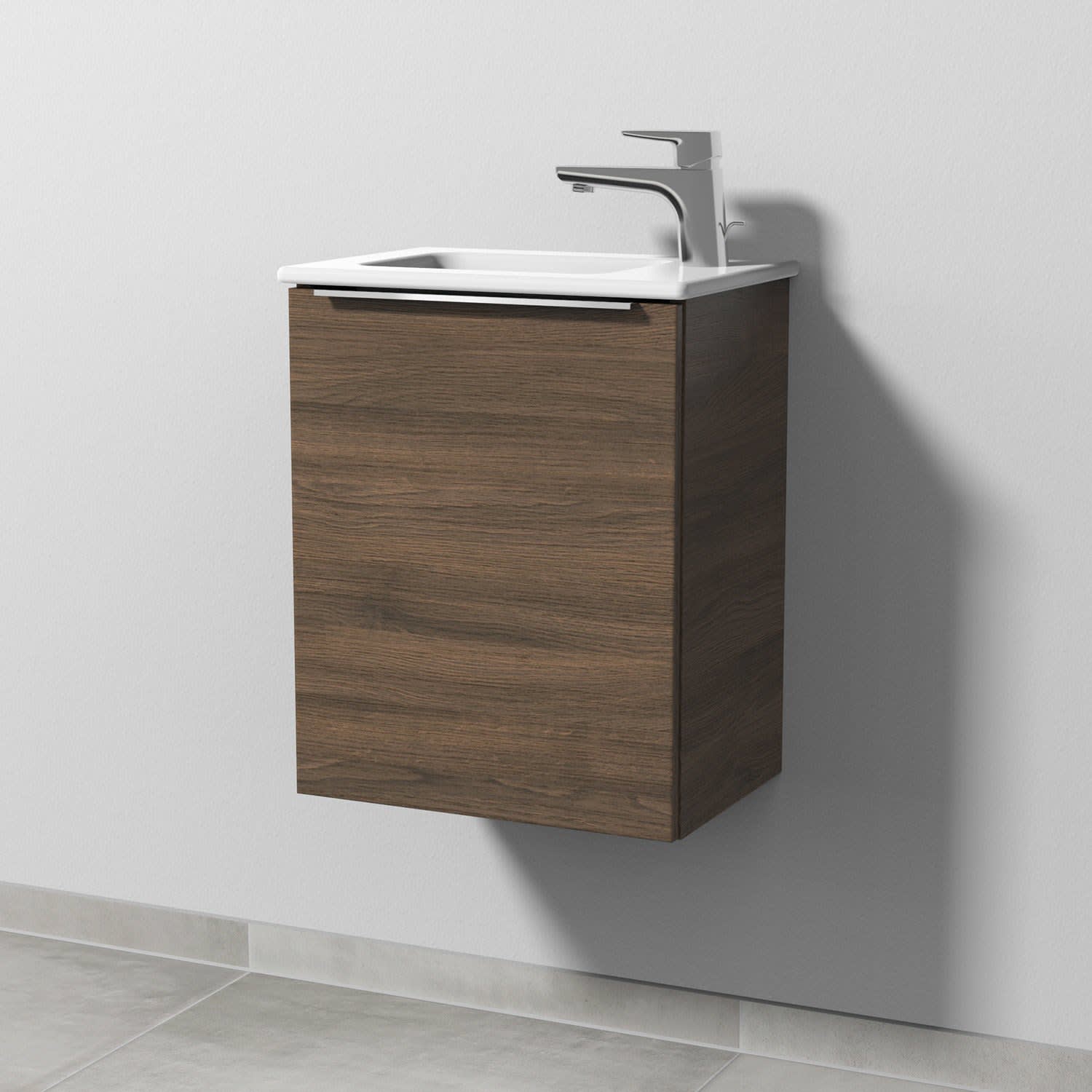 Sanipa 3way Waschtischunterbau für Keramik-Waschtisch ME by Starck 43 cm, 1 Tür, Anschlag links, mit Aufsatzgriff