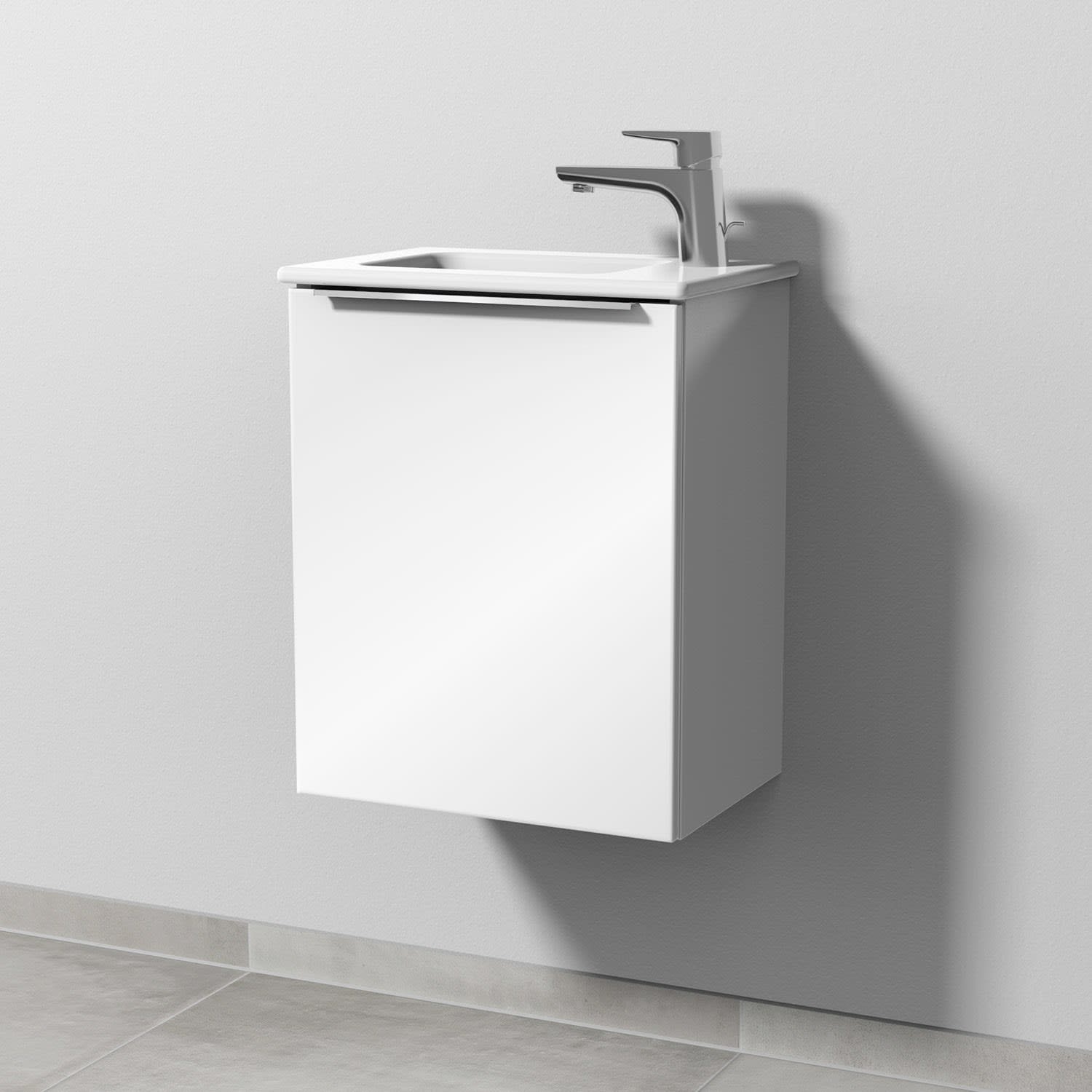 Sanipa 3way Waschtischunterbau für Keramik-Waschtisch ME by Starck 43 cm, 1 Tür, Anschlag links, mit Aufsatzgriff