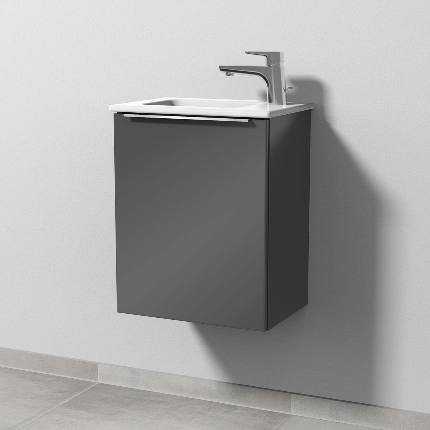 Sanipa 3way Waschtischunterbau für Keramik-Waschtisch ME by Starck 43 cm, 1 Tür, Anschlag links, mit Aufsatzgriff