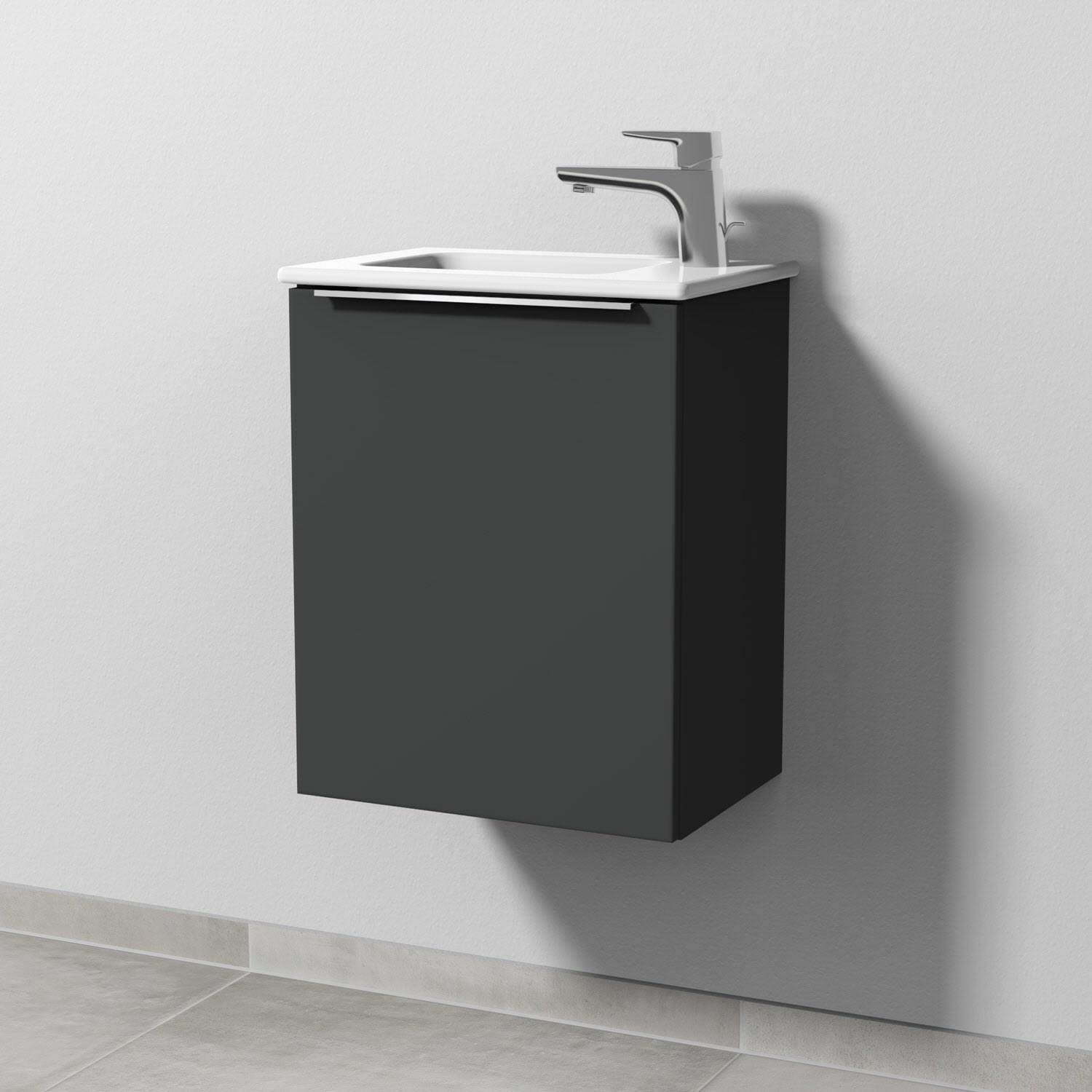 Sanipa 3way Waschtischunterbau für Keramik-Waschtisch ME by Starck 43 cm, 1 Tür, Anschlag links, mit Aufsatzgriff