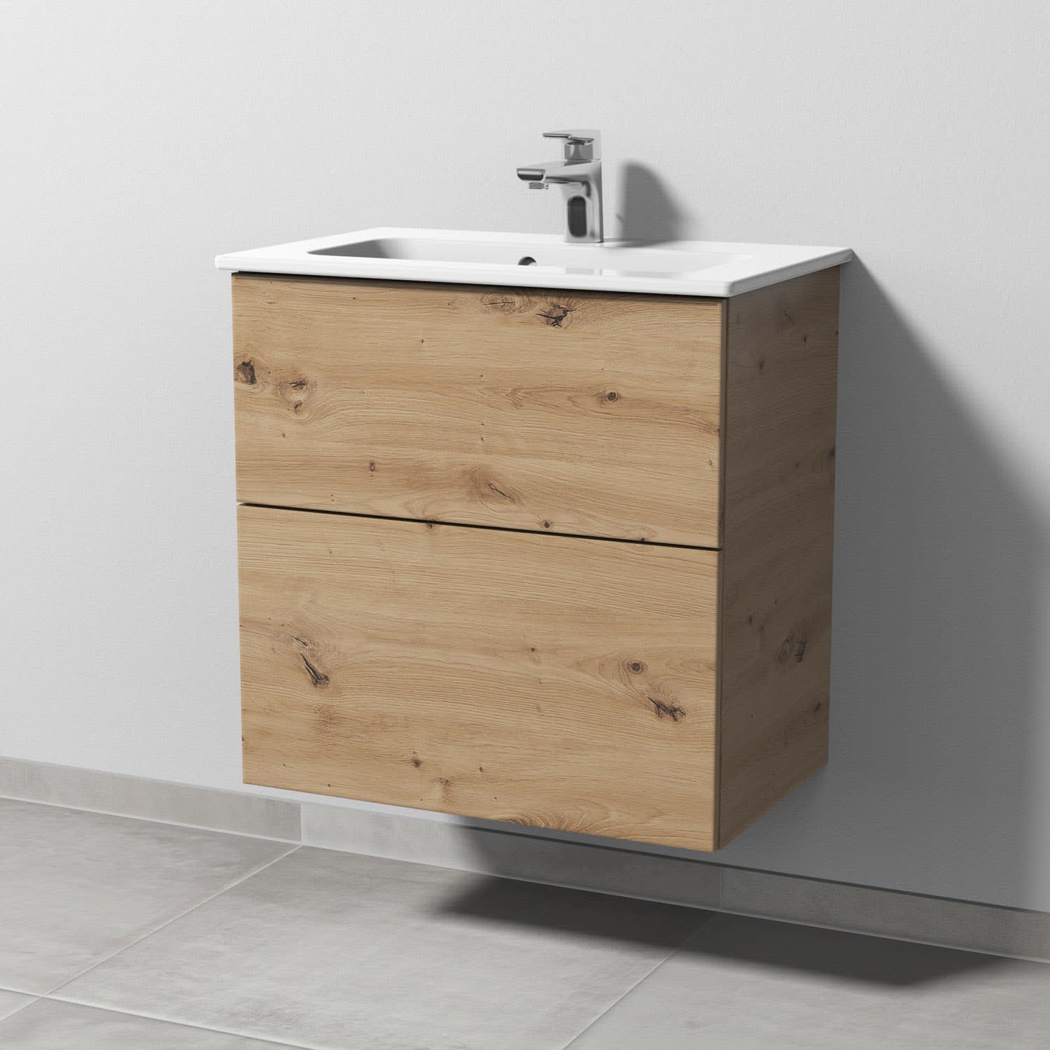 Sanipa 3way Waschtischunterbau für Keramik-Waschtisch ME by Starck 63 cm, 2 Auszüge mit Push to open, geringere Tiefe