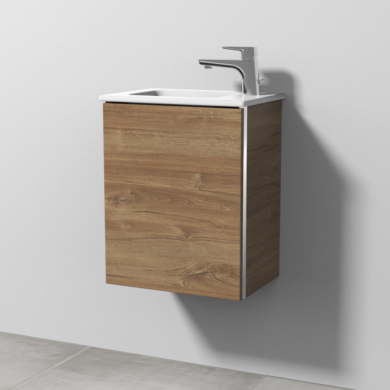 Sanipa 3way Waschtischunterbau für Keramik-Waschtisch ME by Starck 43 cm, 1 Tür, Anschlag links, mit Griffleiste
