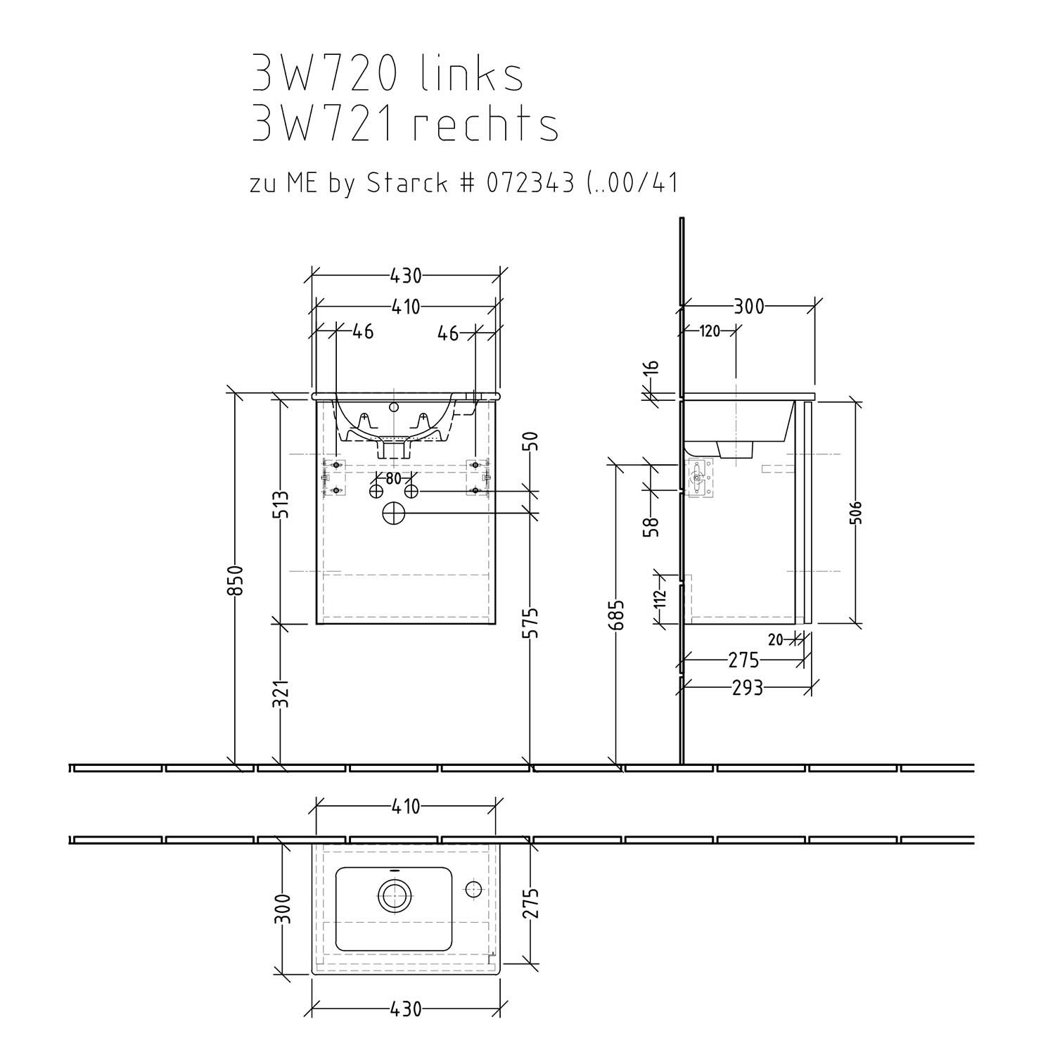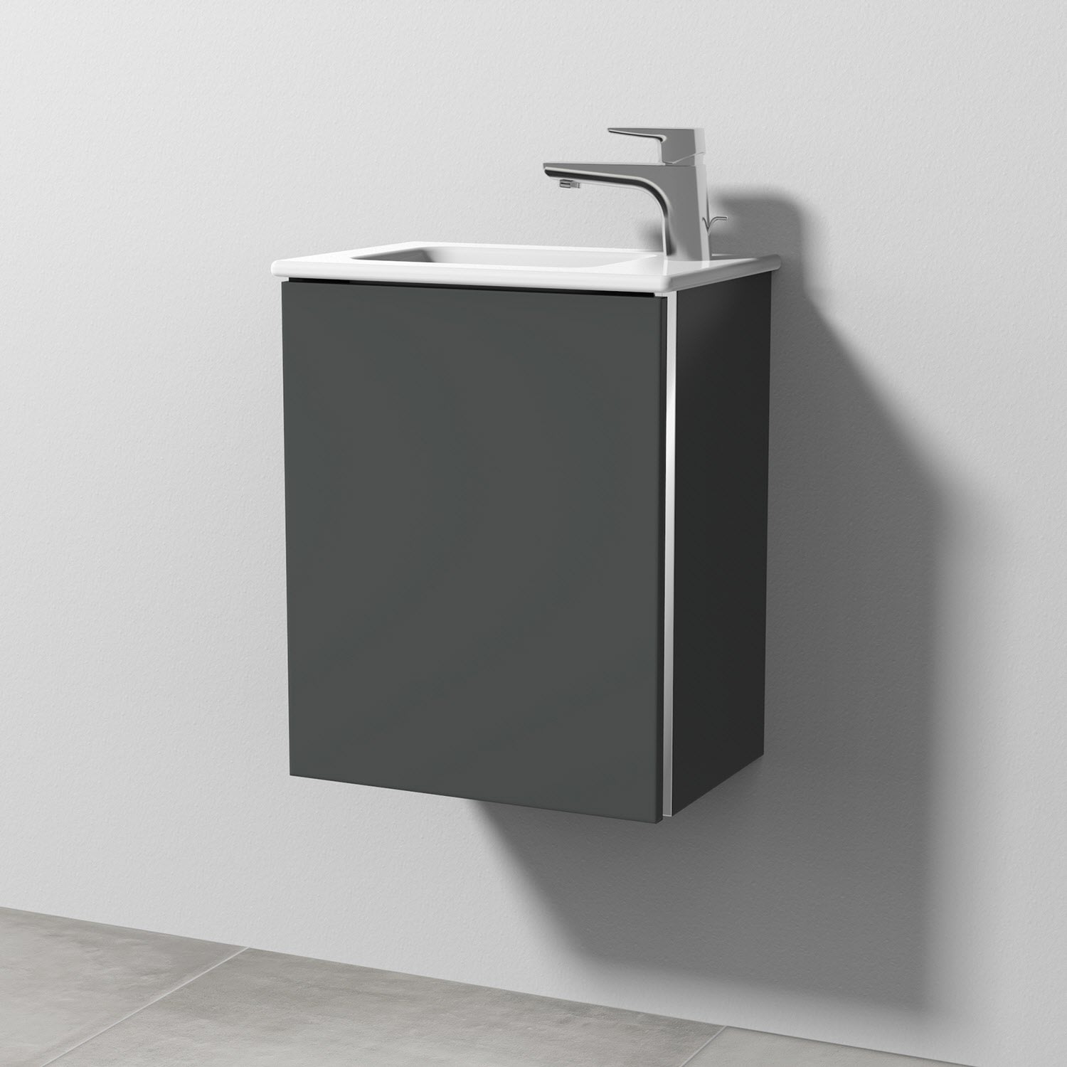 Sanipa 3way Waschtischunterbau für Keramik-Waschtisch ME by Starck 43 cm, 1 Tür, Anschlag links, mit Griffleiste
