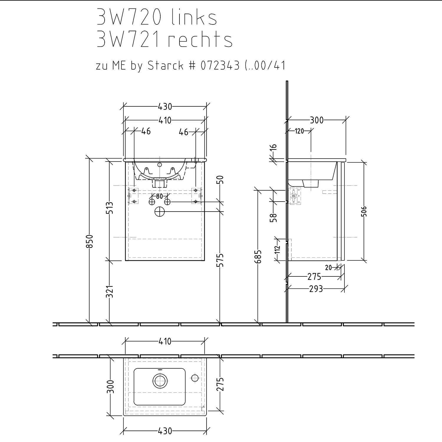 Sanipa 3way Waschtischunterbau für Keramik-Waschtisch ME by Starck 43 cm, 1 Tür, Anschlag rechts, mit Griffleiste