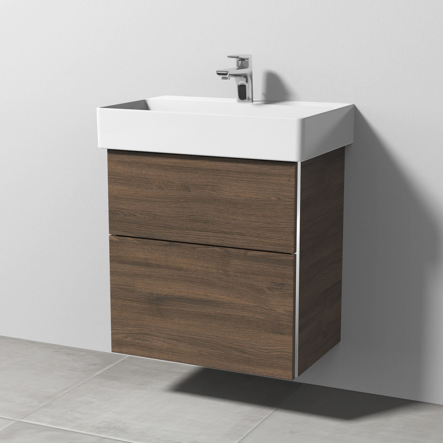 Sanipa 3way Waschtischunterbau für Keramik-Waschtisch Dura Square 60 cm, 2 Auszüge mit Griffleisten, geringere Tiefe