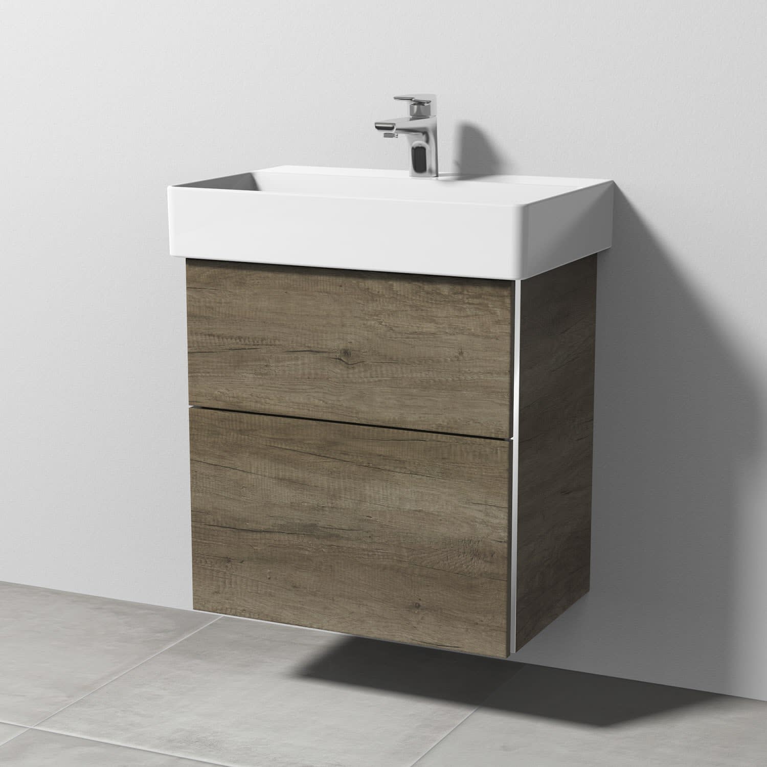 Sanipa 3way Waschtischunterbau für Keramik-Waschtisch Dura Square 60 cm, 2 Auszüge mit Griffleisten, geringere Tiefe