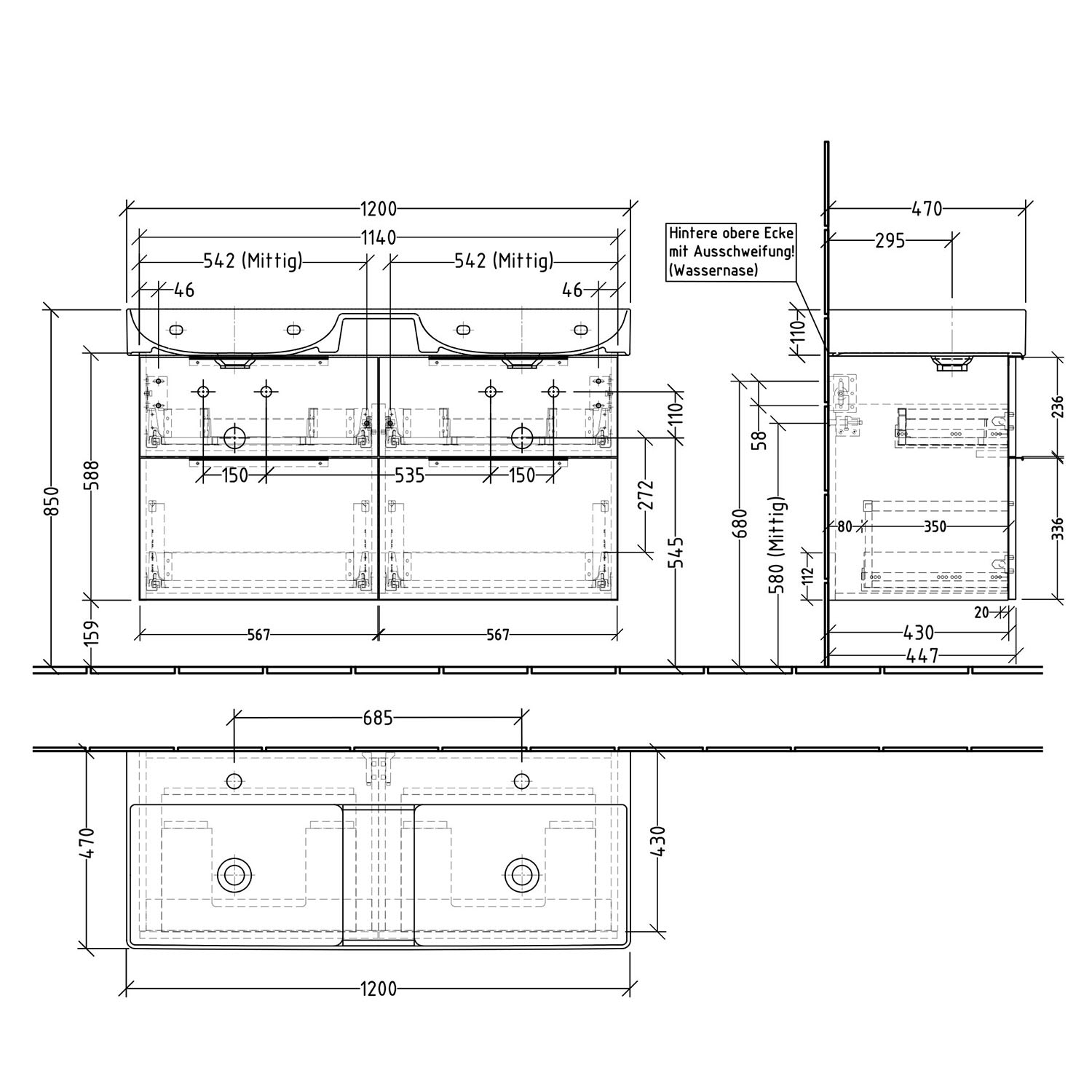 - oberer Auszüge mit eckigem Siphonausschnitt