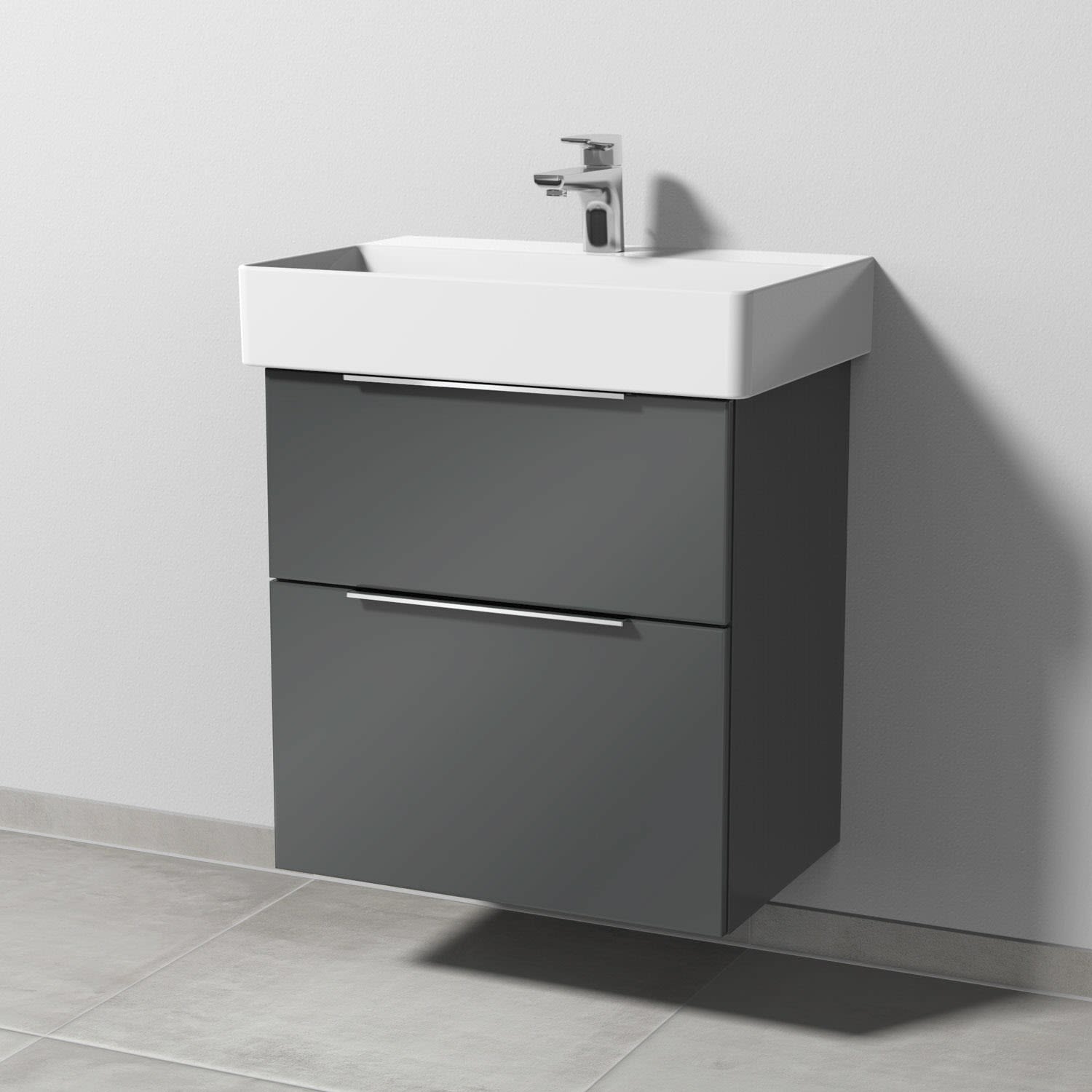 Sanipa 3way Waschtischunterbau für Keramik-Waschtisch Dura Square 60 cm, 2 Auszüge mit Aufsatzgriff, geringere Tiefe