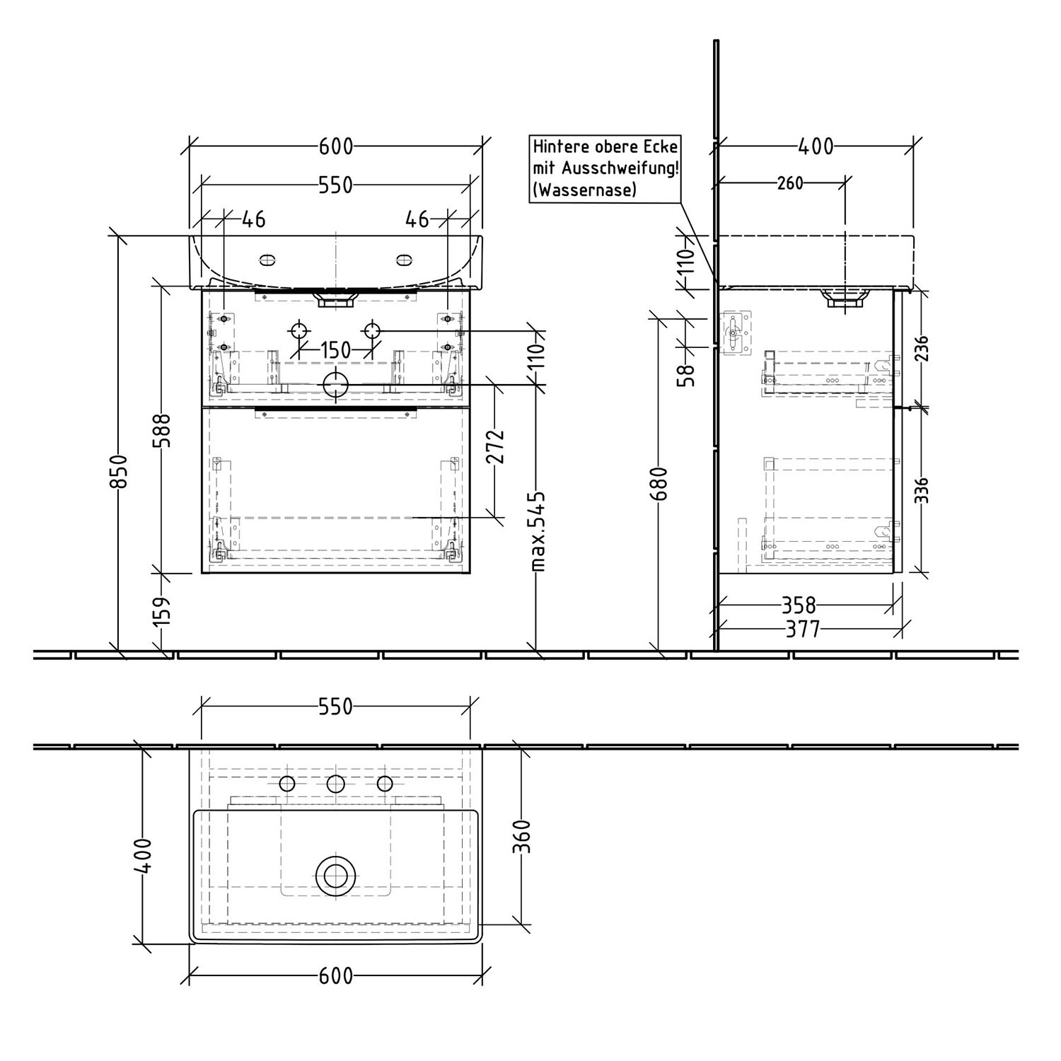 - oberer Auszug mit eckigem Siphonausschnitt