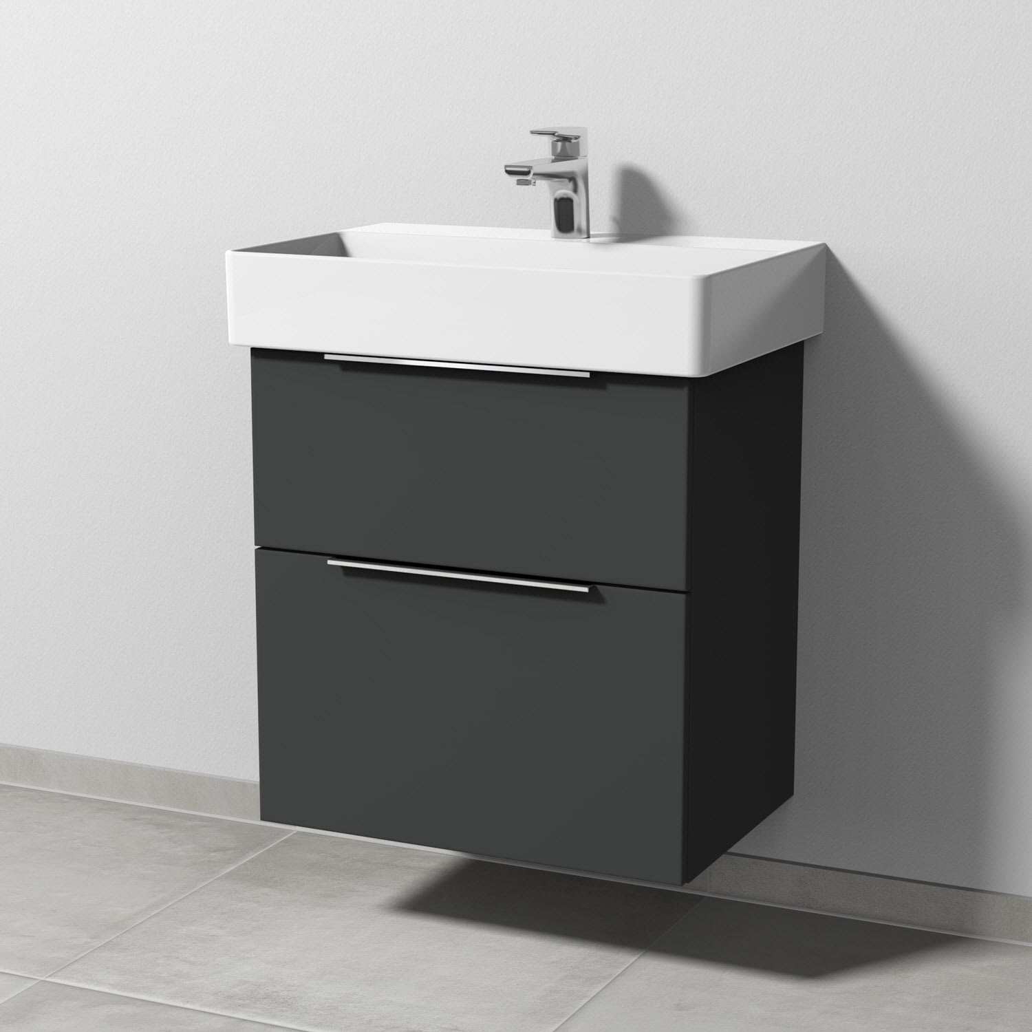 Sanipa 3way Waschtischunterbau für Keramik-Waschtisch Dura Square 60 cm, 2 Auszüge mit Aufsatzgriff, geringere Tiefe