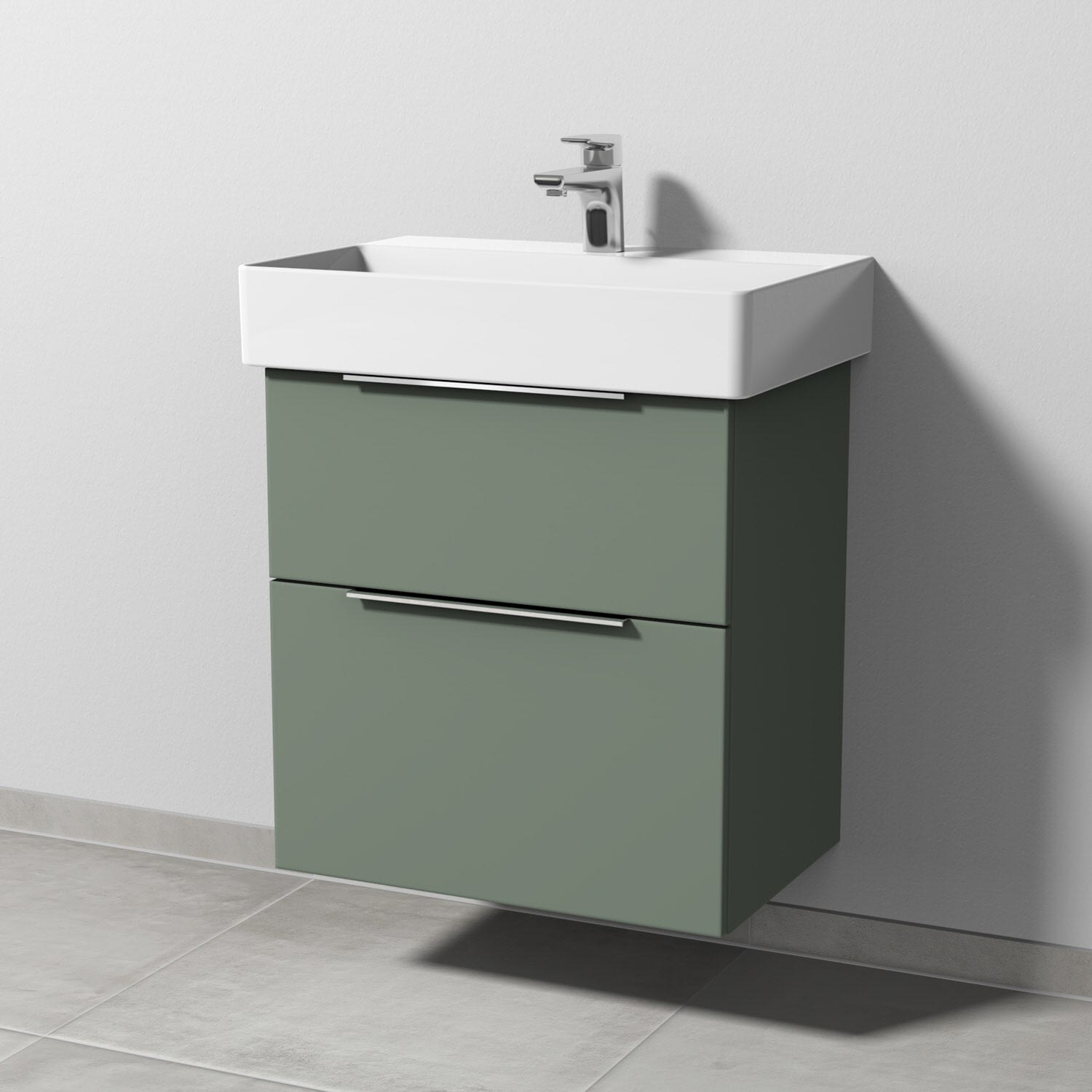 Sanipa 3way Waschtischunterbau für Keramik-Waschtisch Dura Square 60 cm, 2 Auszüge mit Aufsatzgriff, geringere Tiefe