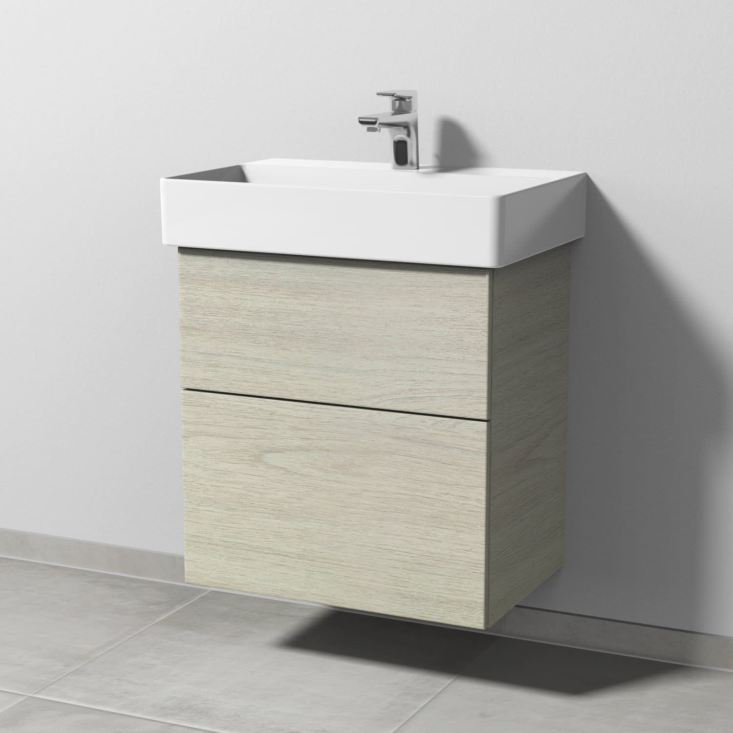 Sanipa 3way Waschtischunterbau für Keramik-Waschtisch Dura Square 60 cm, 2 Auszüge mit Push to open, geringere Tiefe