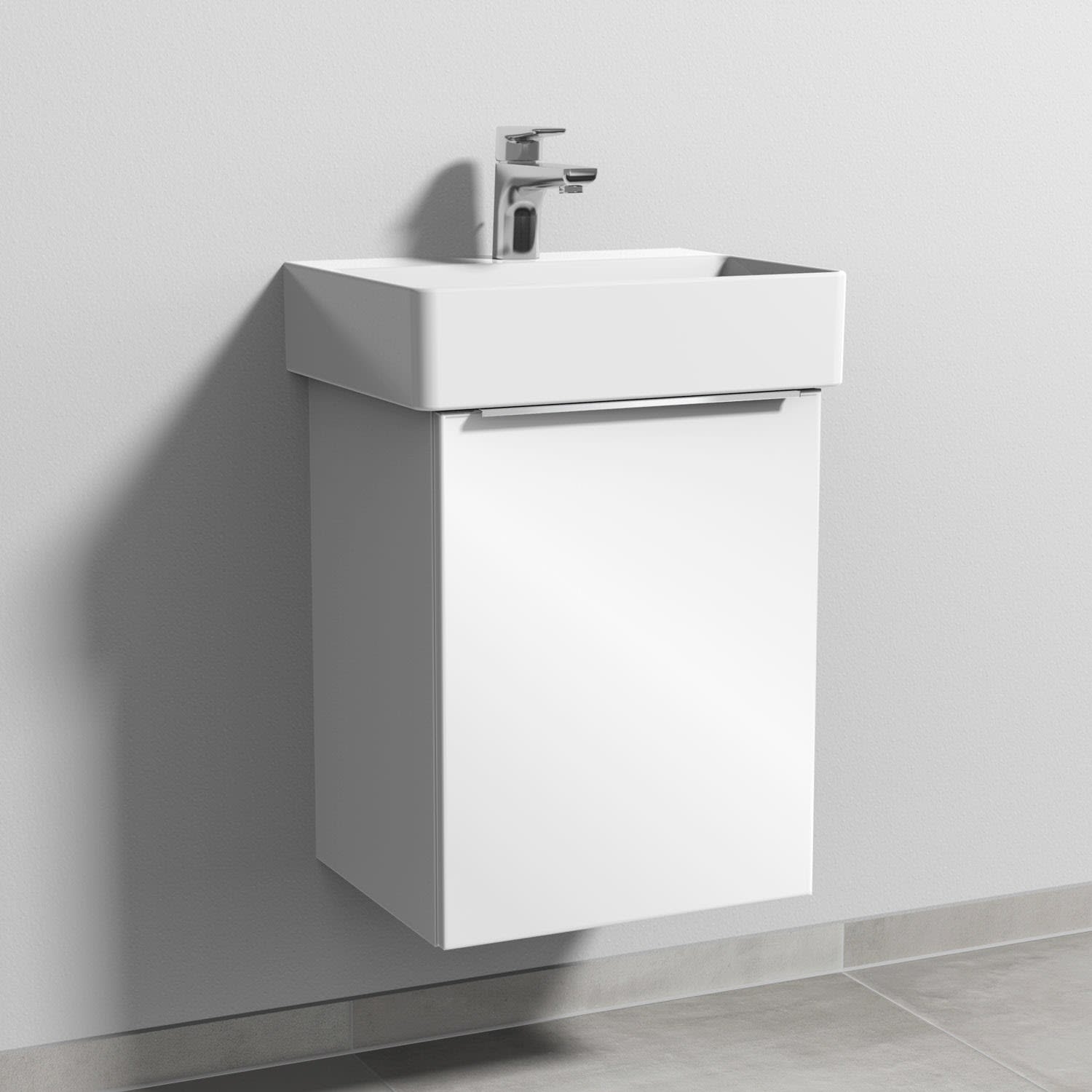 Sanipa 3way Waschtischunterbau für Keramik-Waschtisch Dura Square 45 cm, 1 Tür, Anschlag rechts, mit Aufsatzgriff
