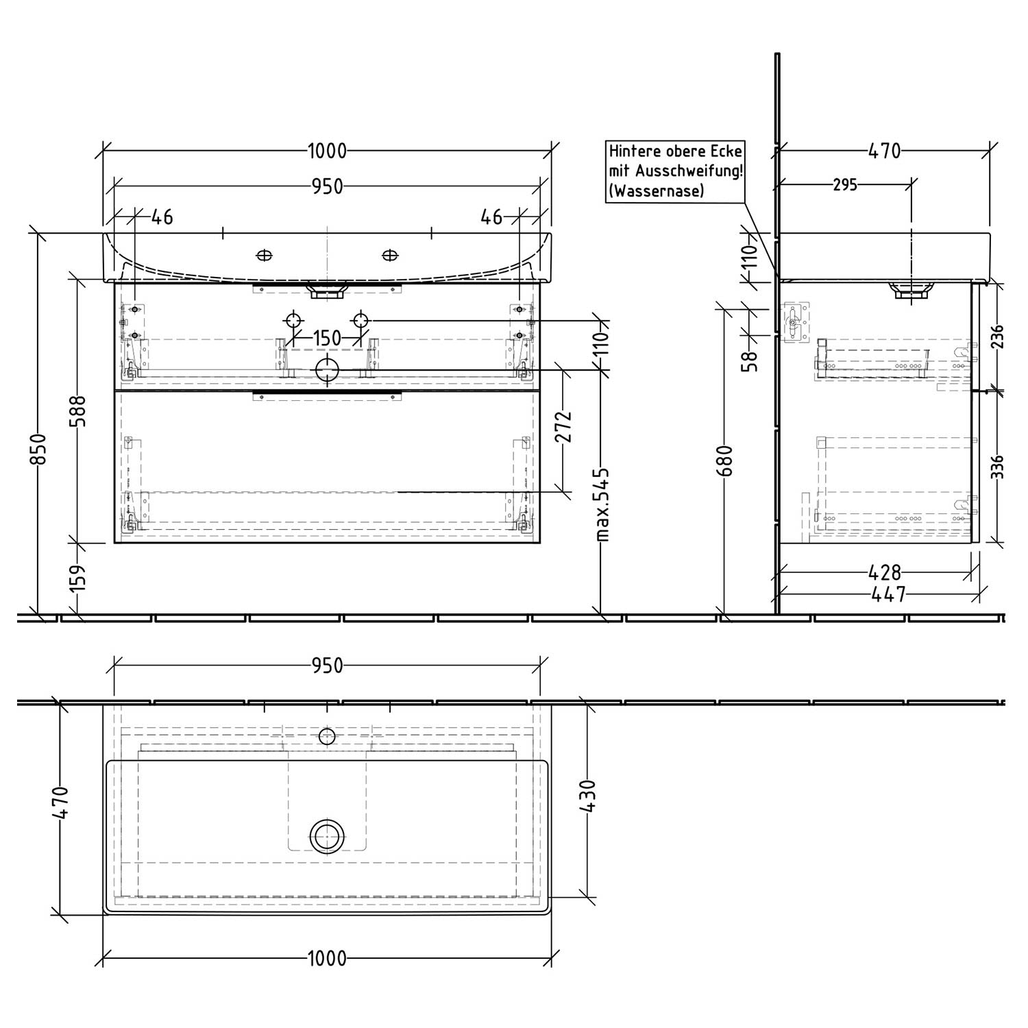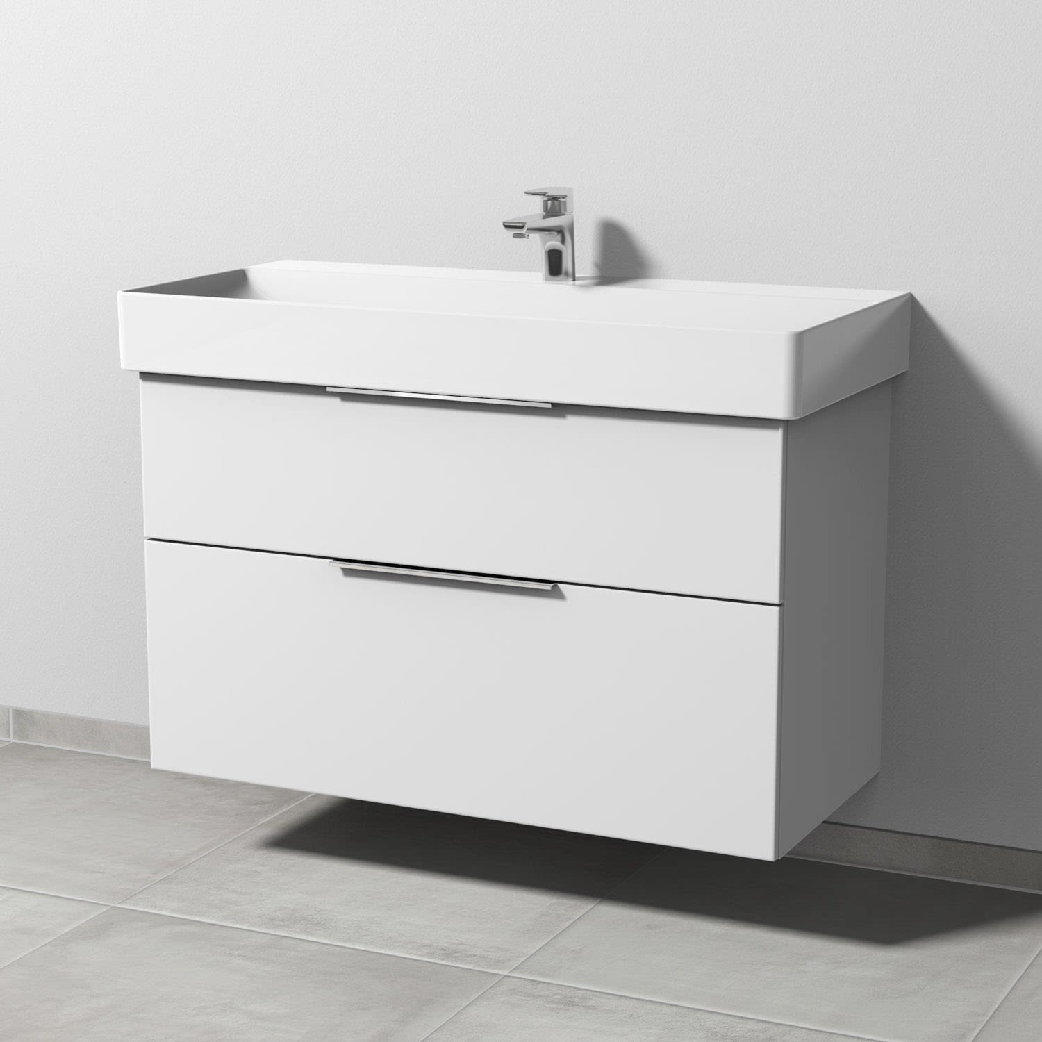 Sanipa 3way Waschtischunterbau für Keramik-Waschtisch Dura Square 100 cm, 2 Auszüge mit Aufsatzgriff