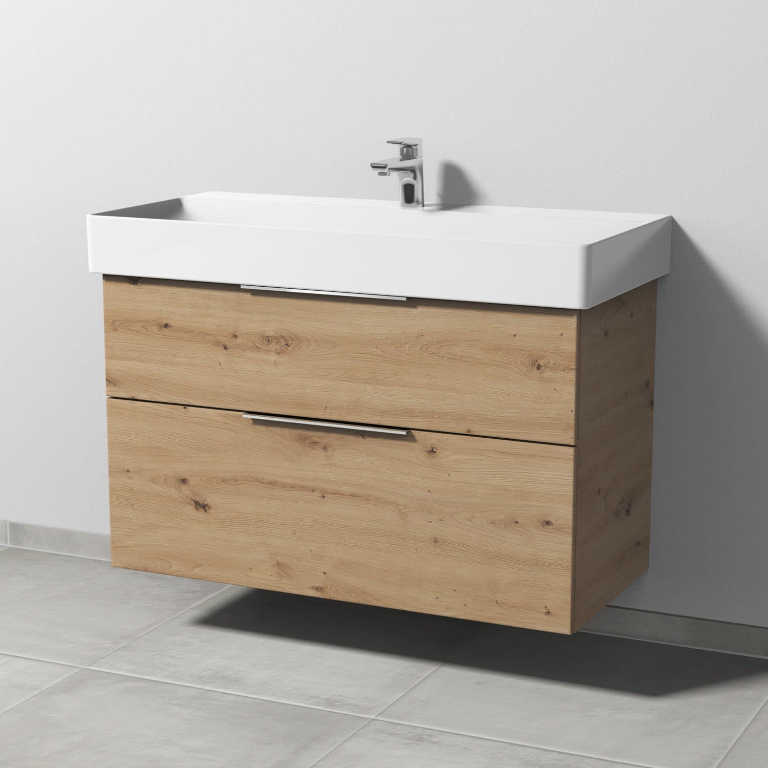Sanipa 3way Waschtischunterbau für Keramik-Waschtisch Dura Square 100 cm, 2 Auszüge mit Aufsatzgriff
