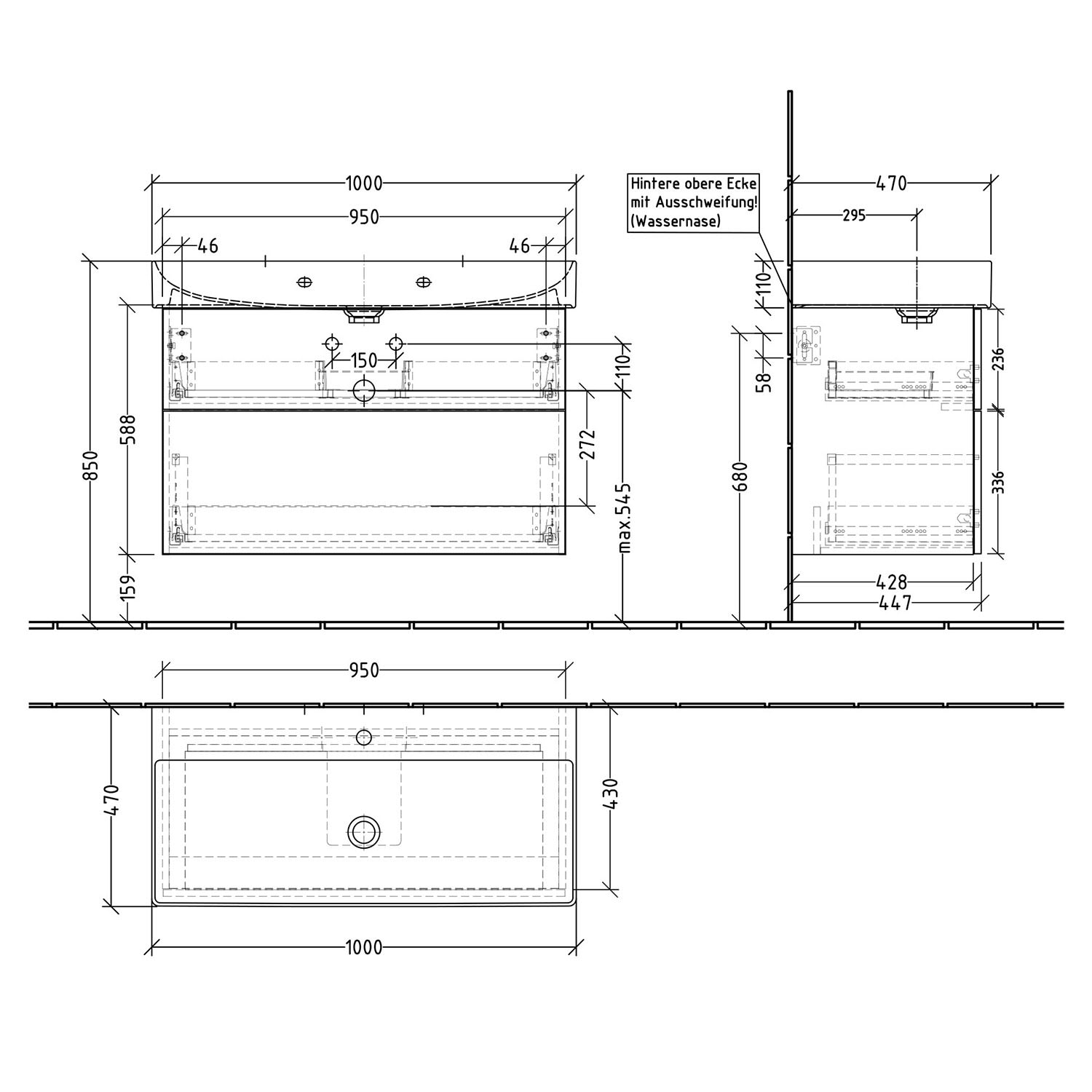 - oberer Auszüge mit eckigem Siphonausschnitt