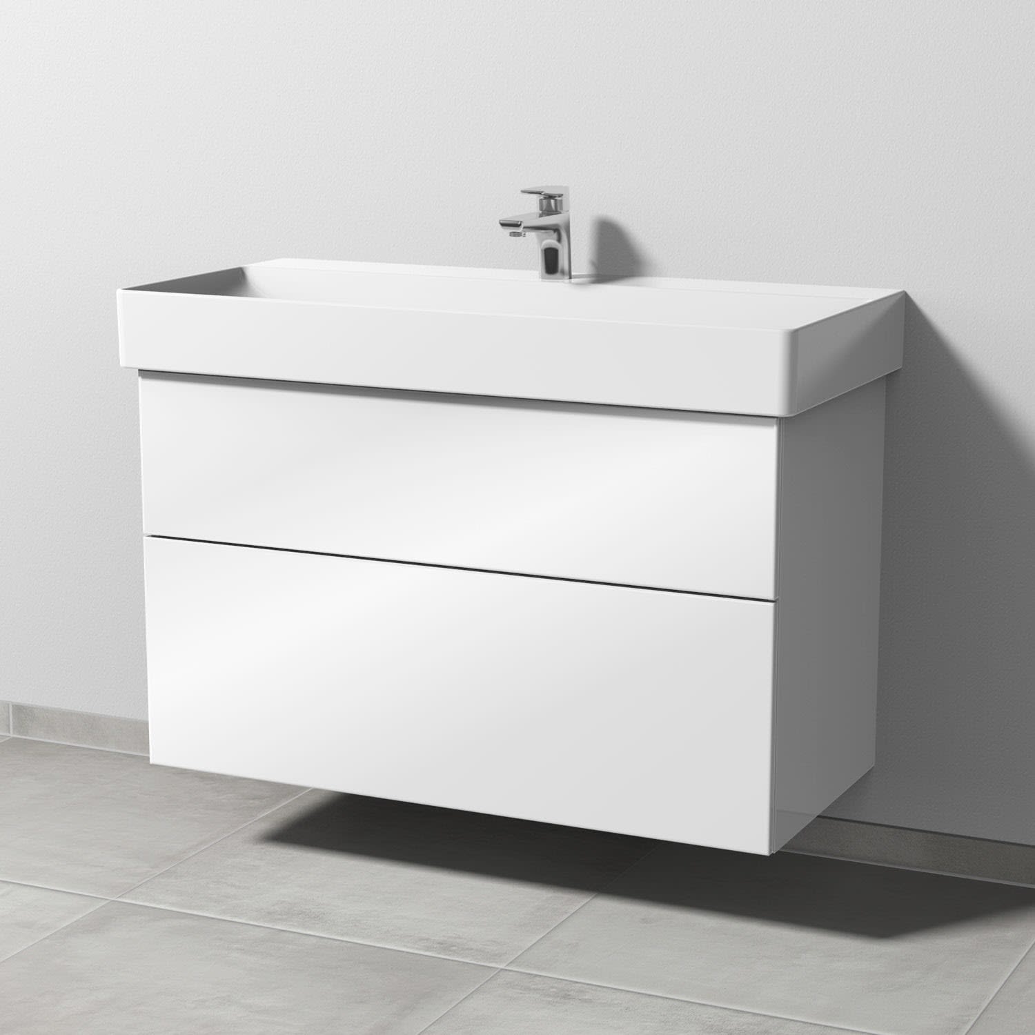 Sanipa 3way Waschtischunterbau für Keramik-Waschtisch Dura Square 100 cm, 2 Auszüge mit Push to open