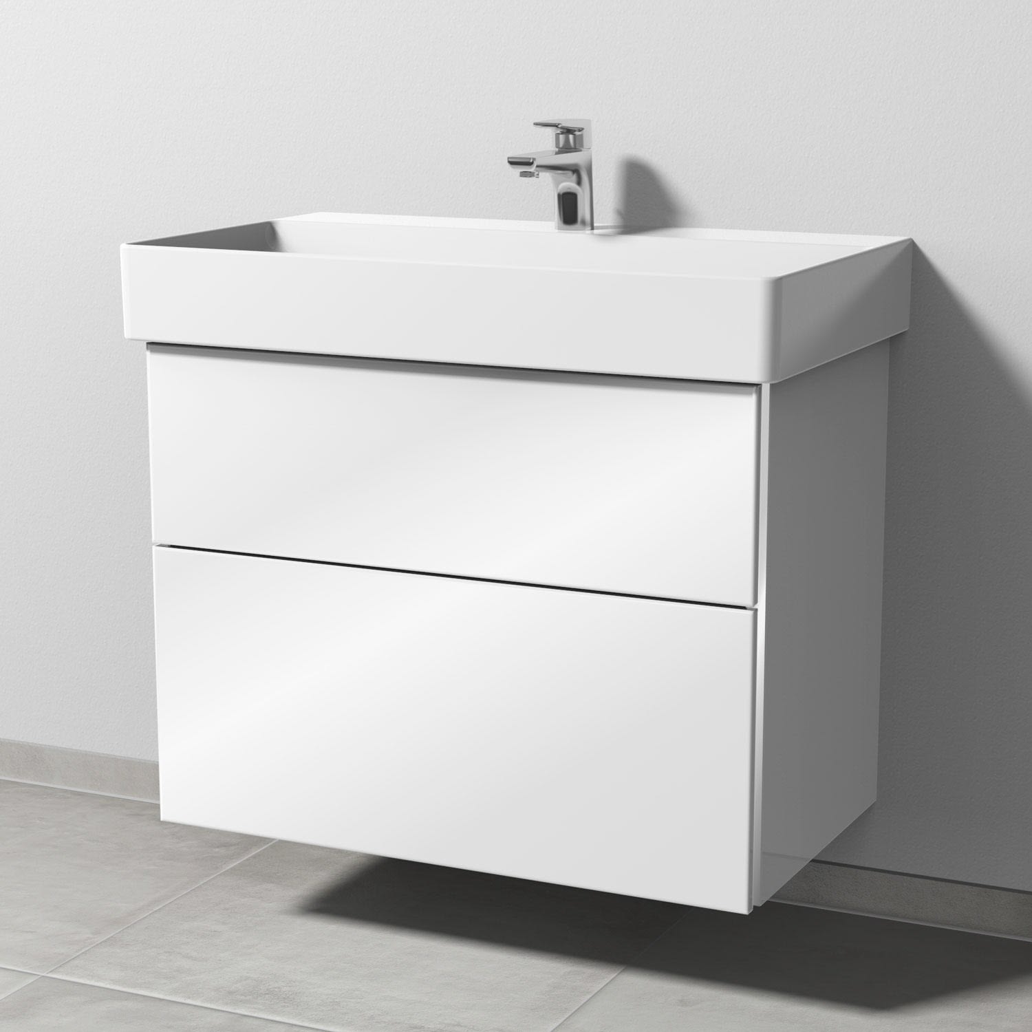 Sanipa 3way Waschtischunterbau für Keramik-Waschtisch Dura Square 80 cm, 2 Auszüge mit Griffleisten