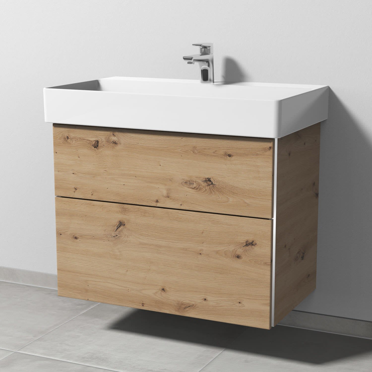 Sanipa 3way Waschtischunterbau für Keramik-Waschtisch Dura Square 80 cm, 2 Auszüge mit Griffleisten